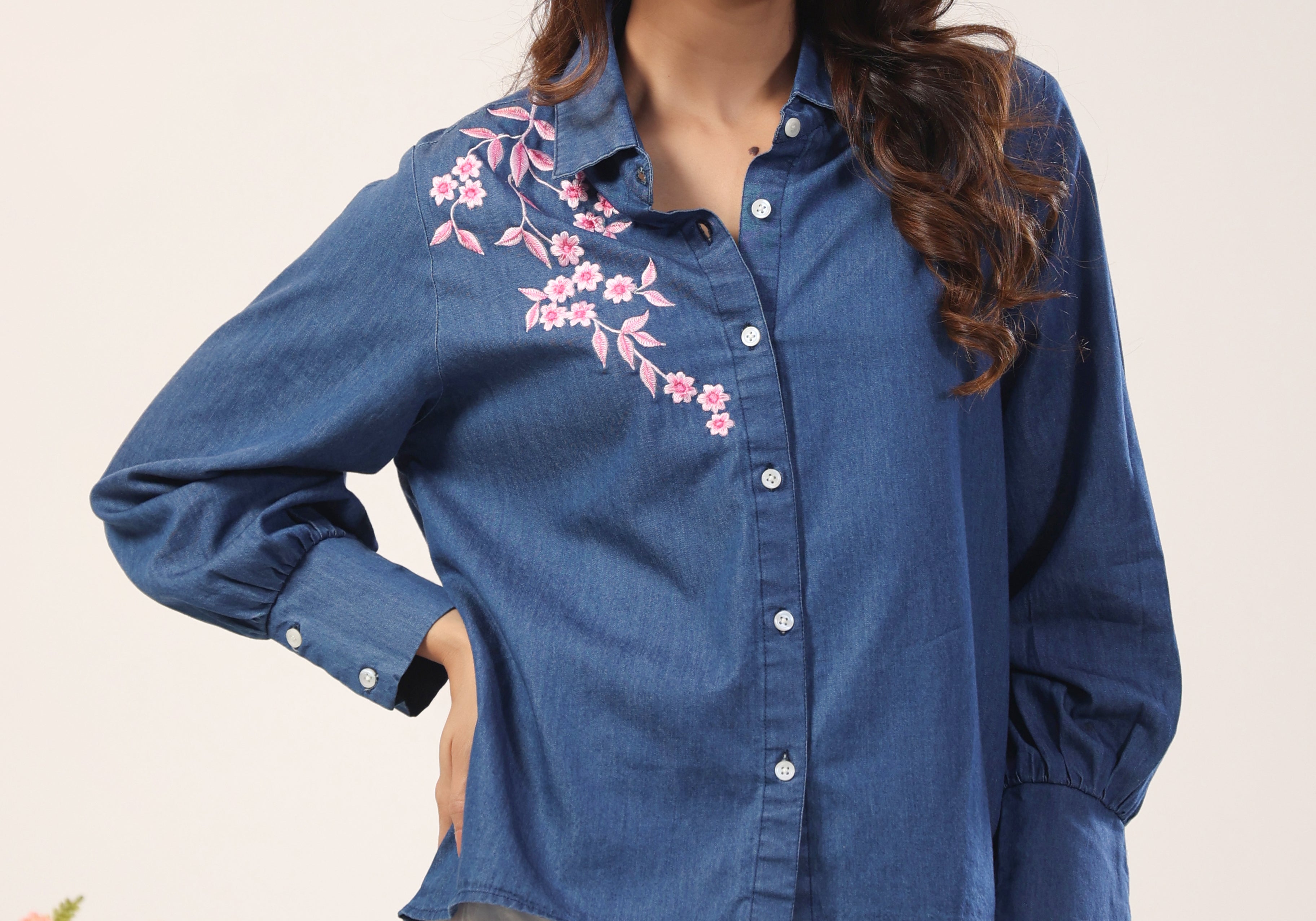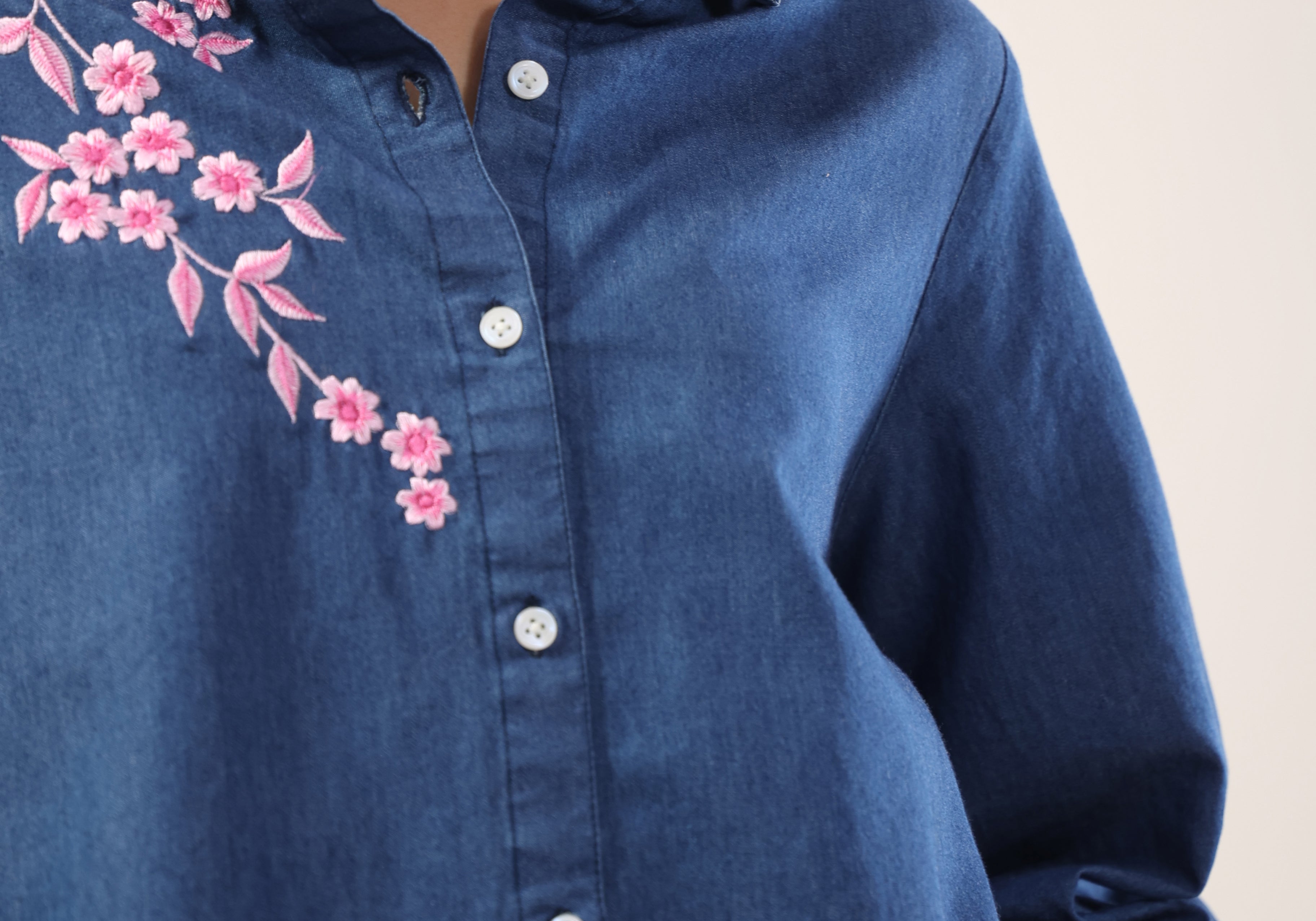 What makes this Sakura Floral Embroidery Denim Shirt truly unique