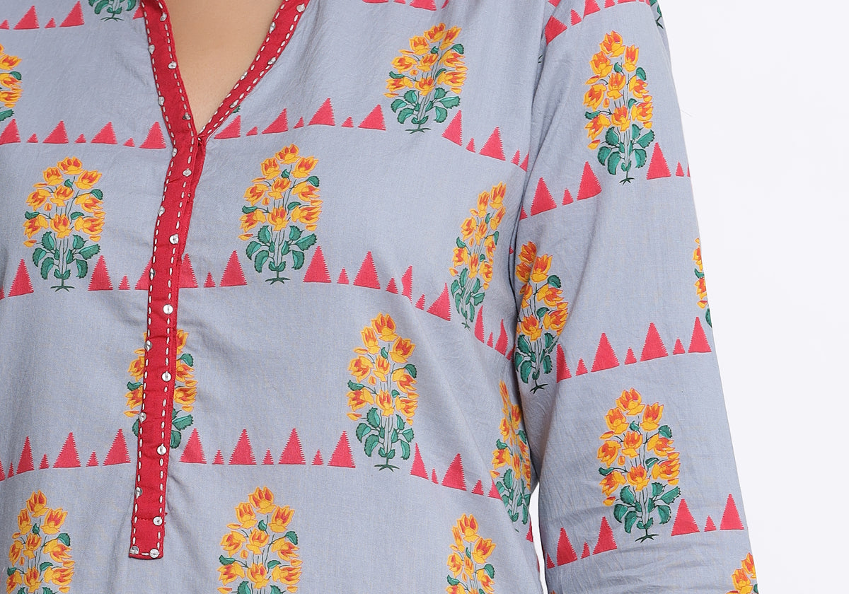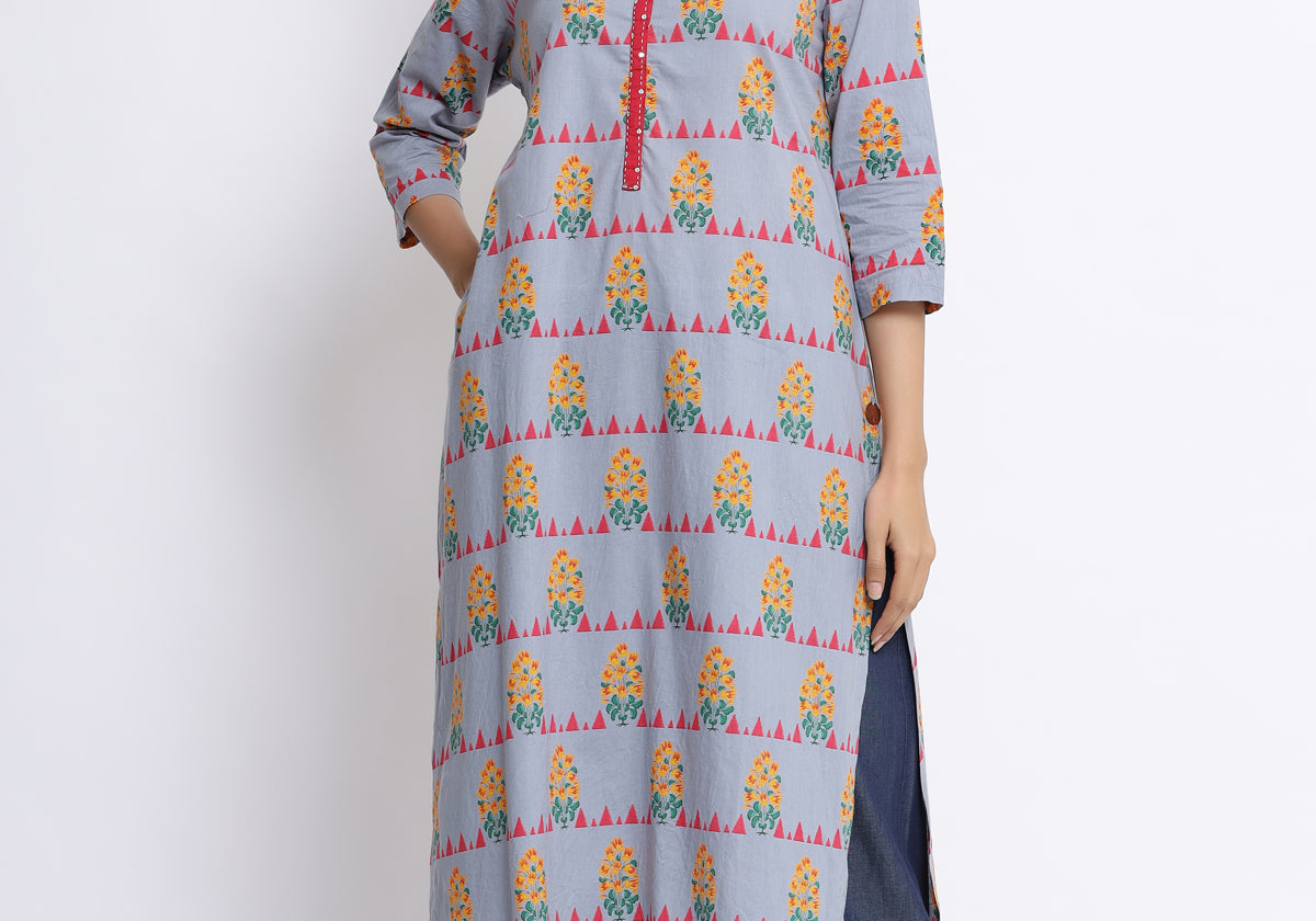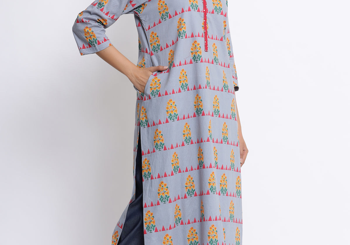 What makes this Grey Colour Floral Printed Cotton Kurta truly unique