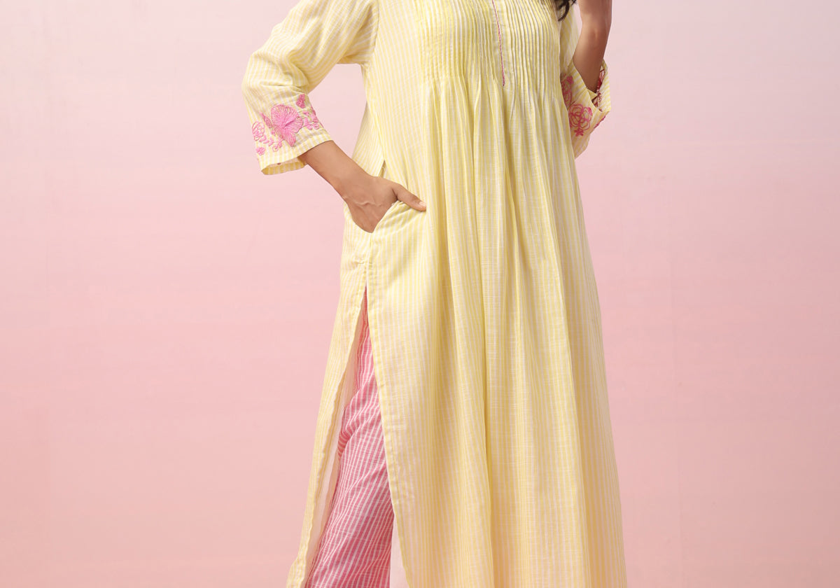What makes this Lime Pop-Up Colour Stripes Kurta truly unique