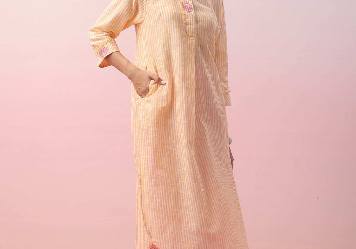 What makes this Orange Pop-Up Colour Strips Kurta truly unique