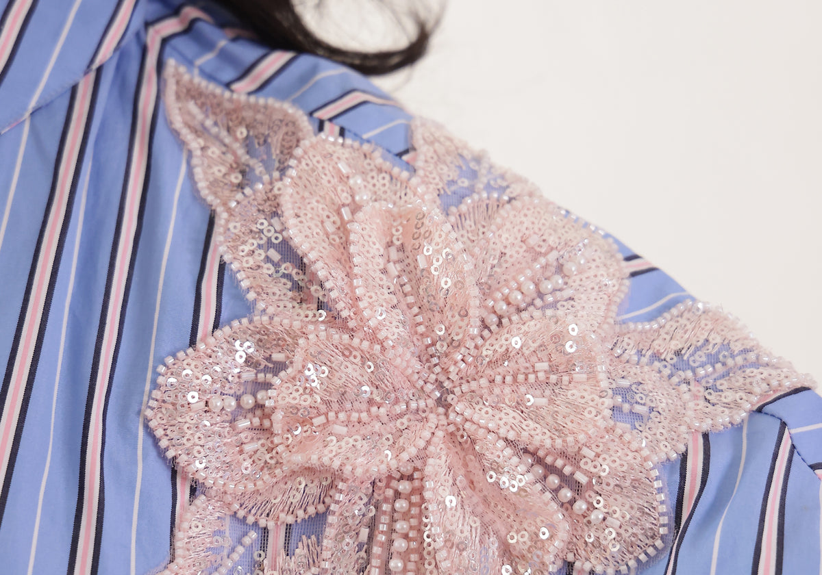 A mix of floral prints and patterns for a trendy aesthetic, Each patch is meticulously hand-embellished, creating a mesmerizing mosaic that catches and reflects light, adding a touch of opulence to your ensemble.