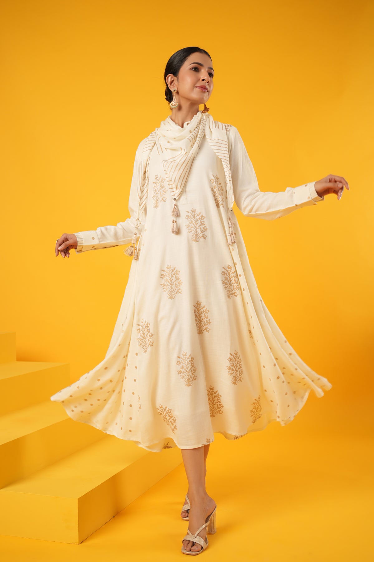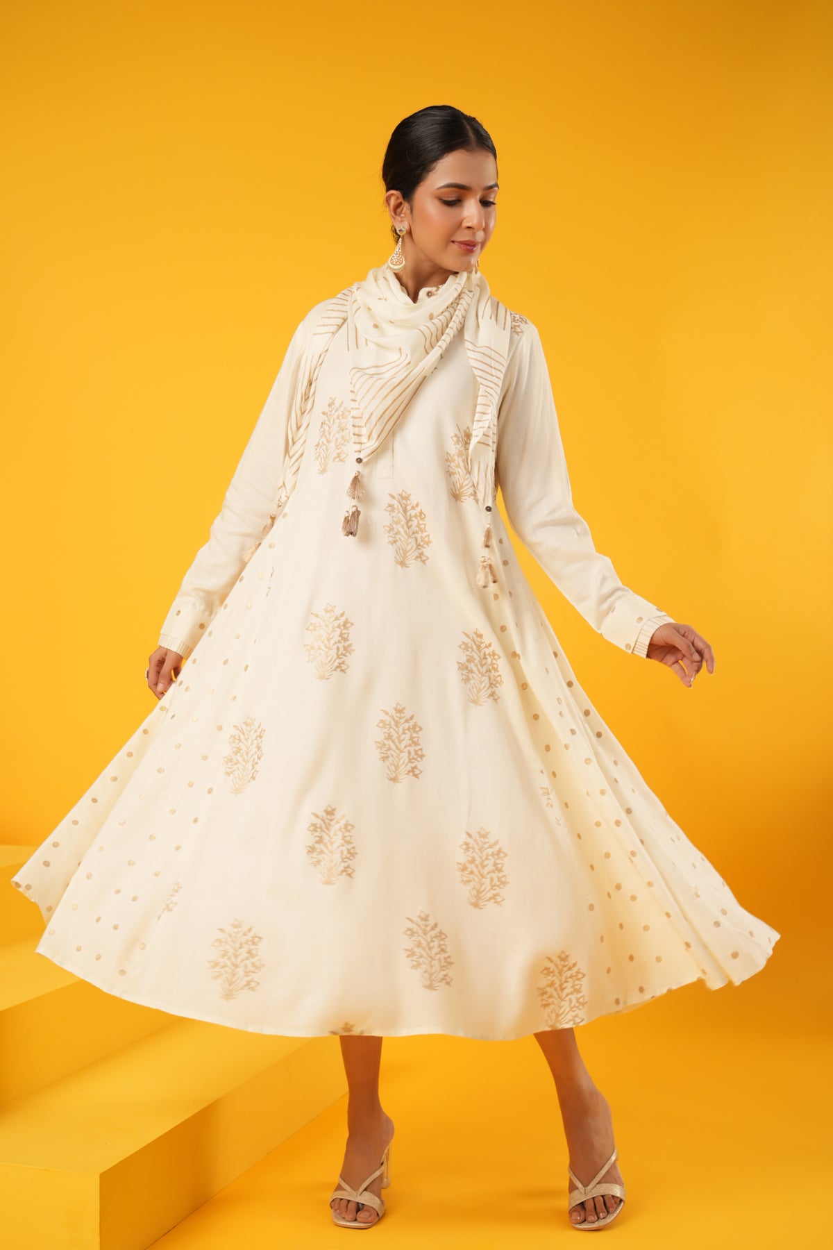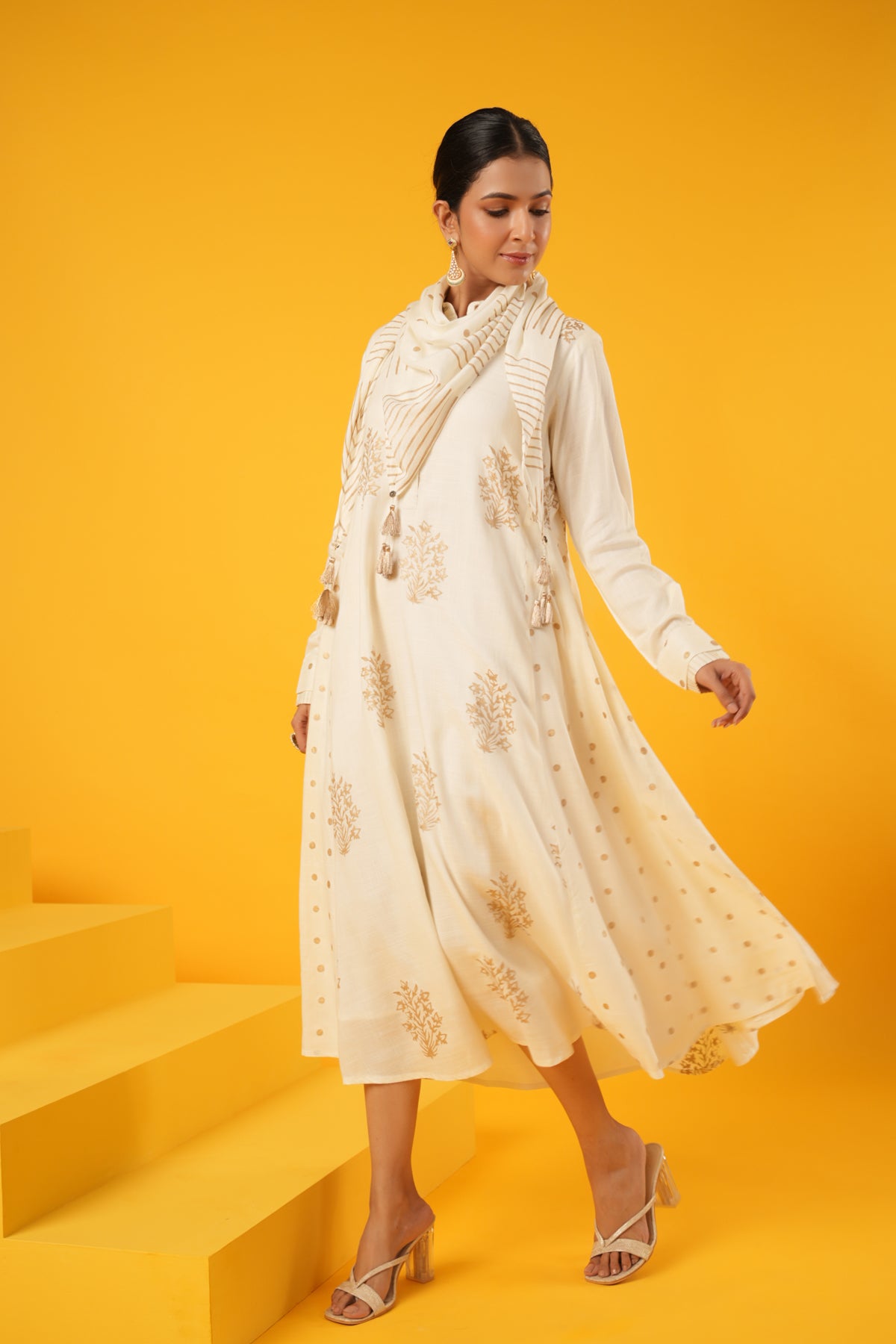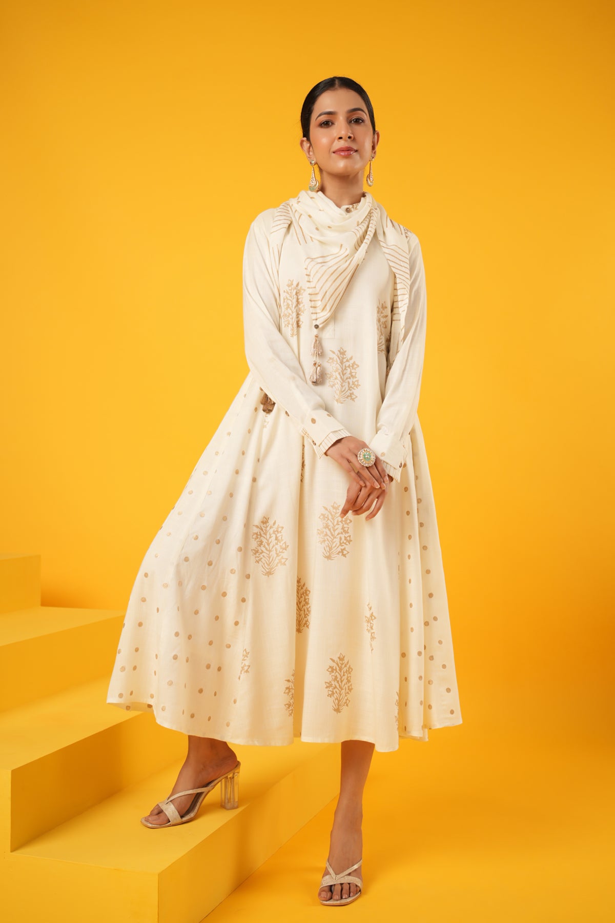 What makes this Kanak Off White Block Print Festive Dress truly unique