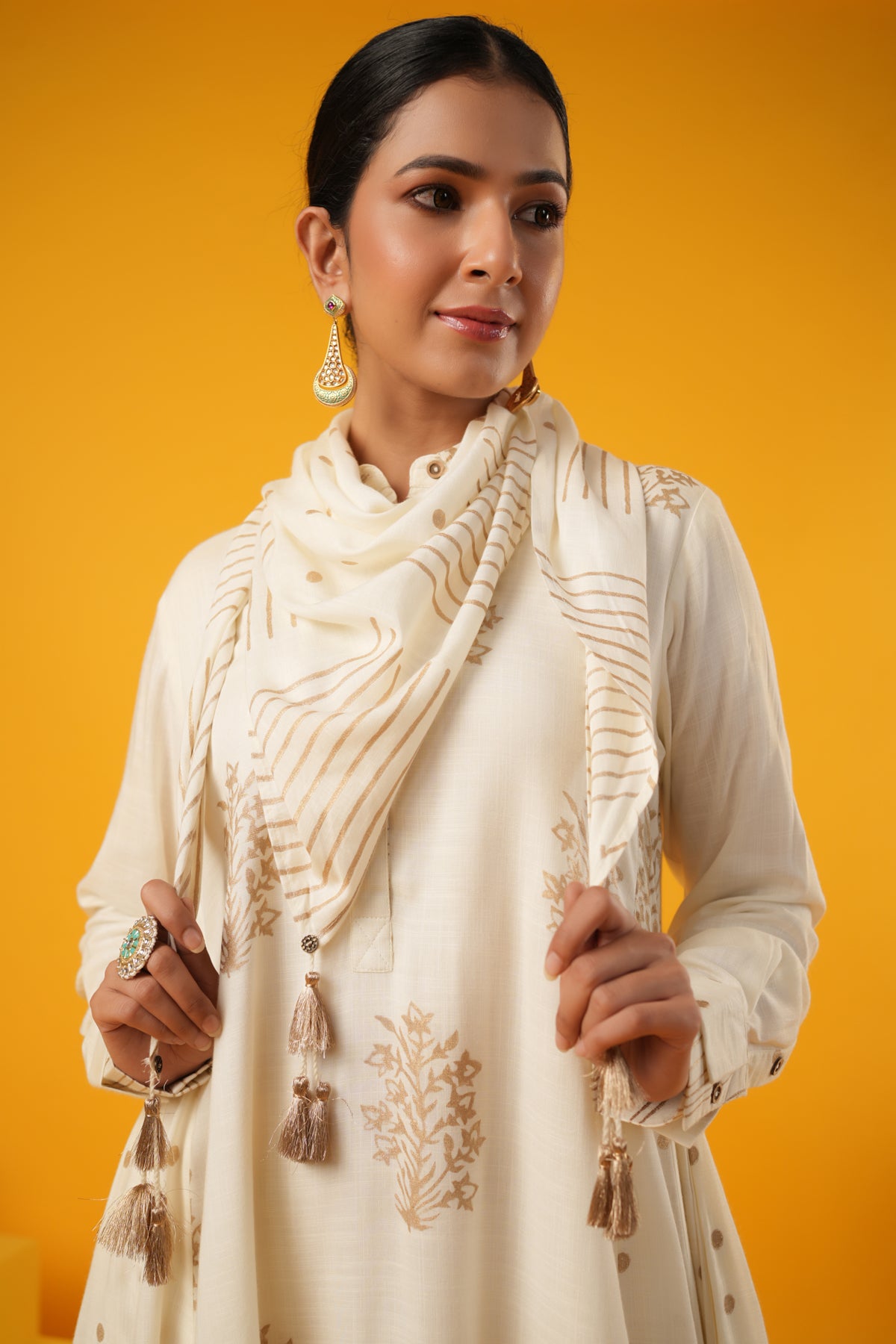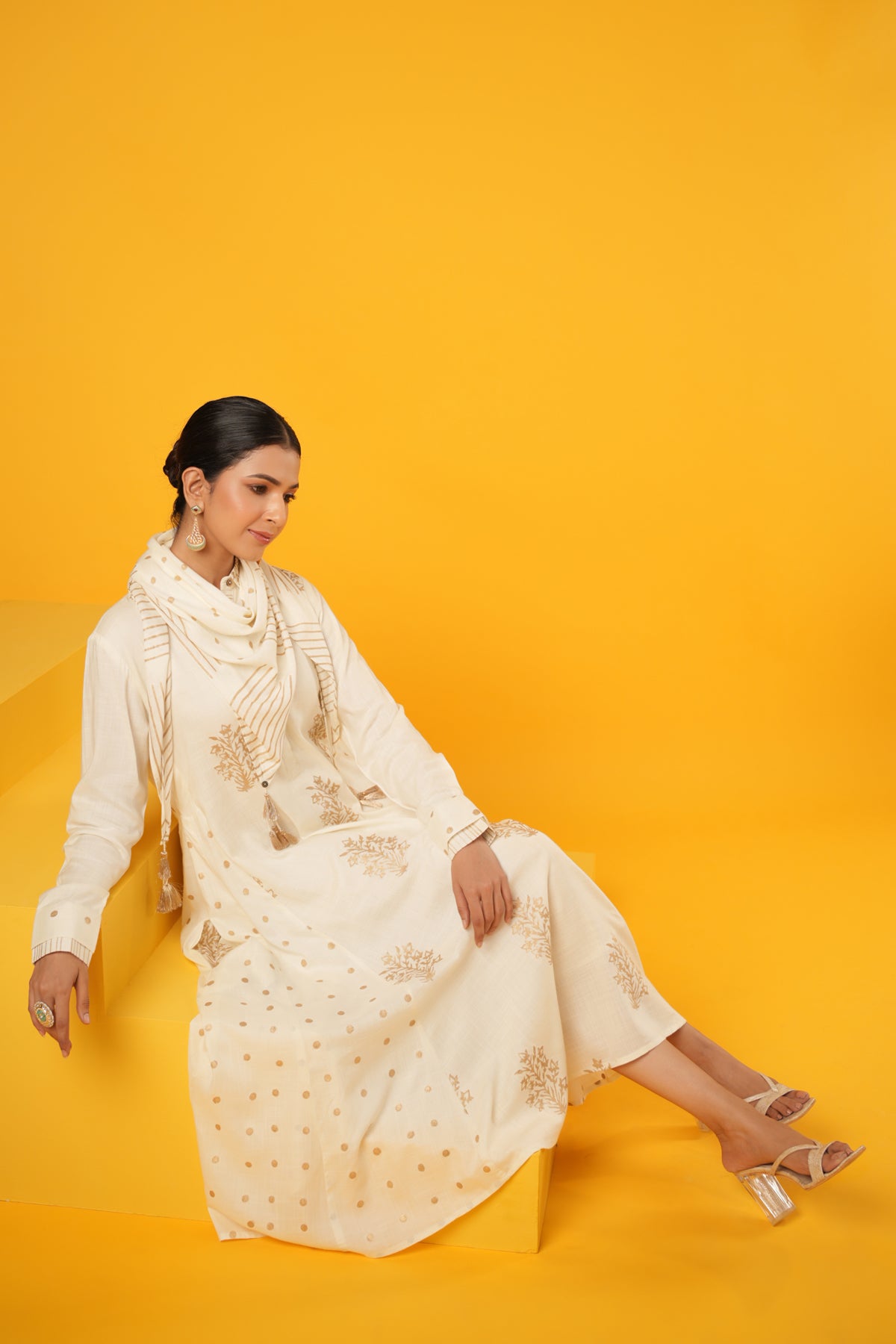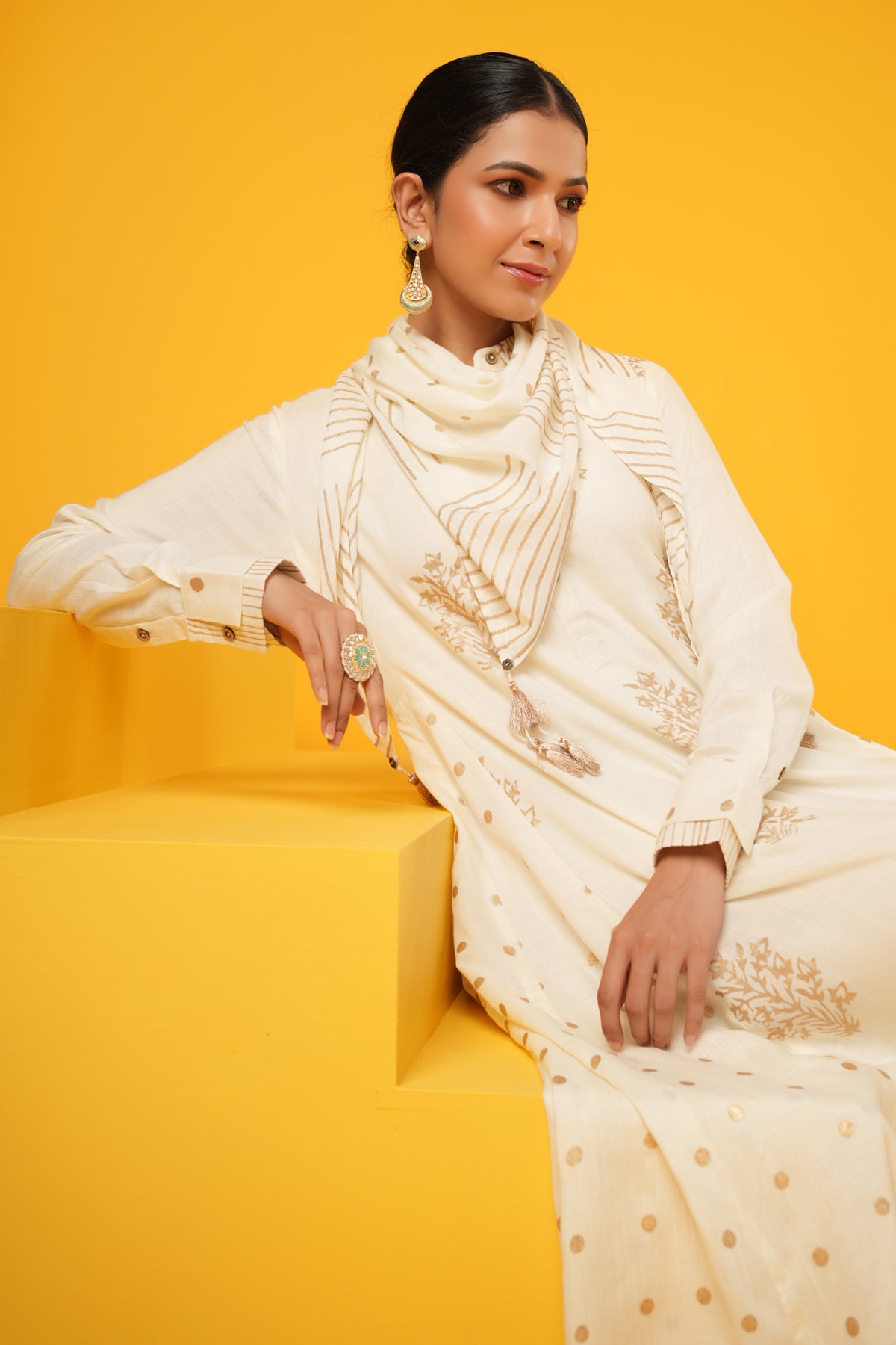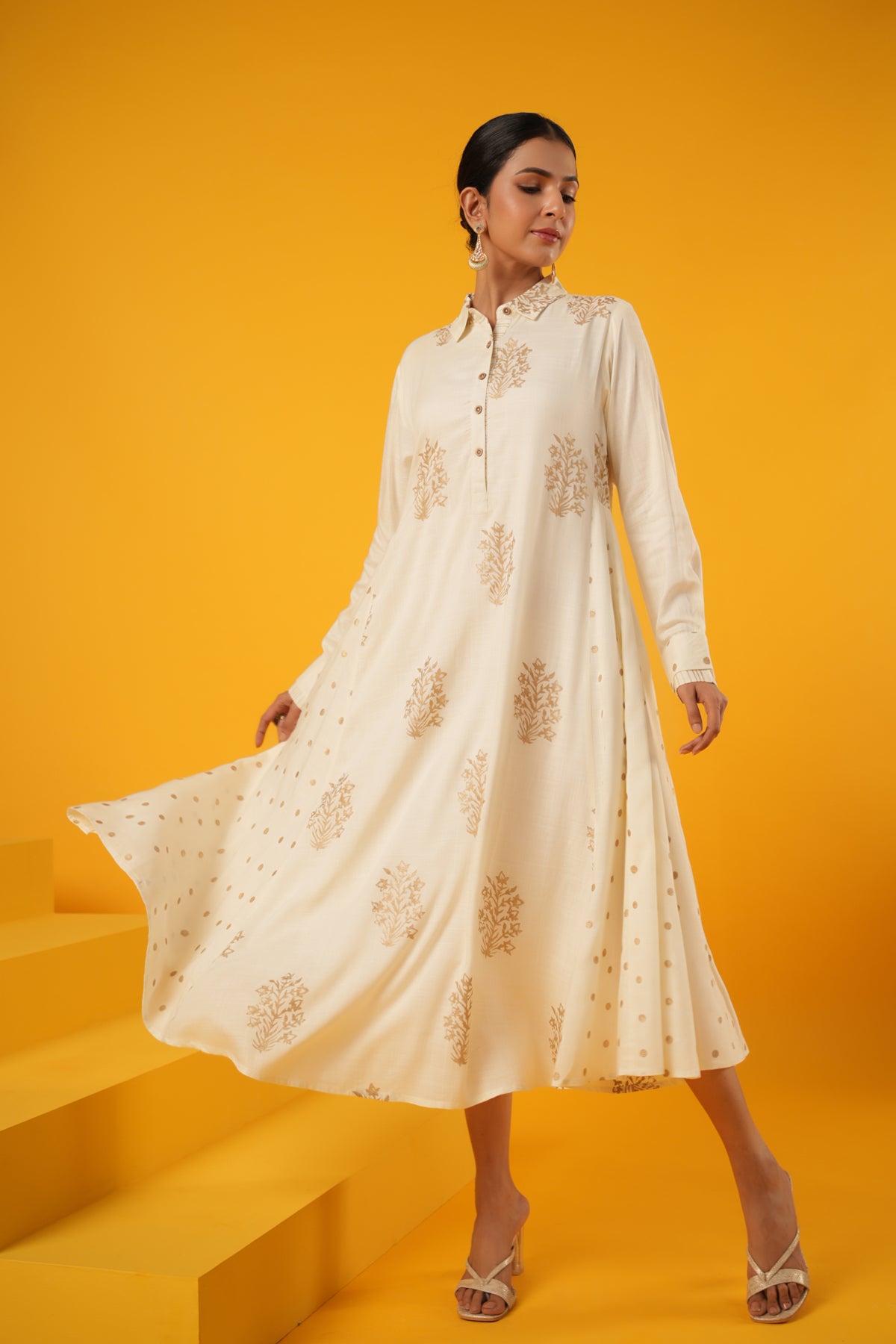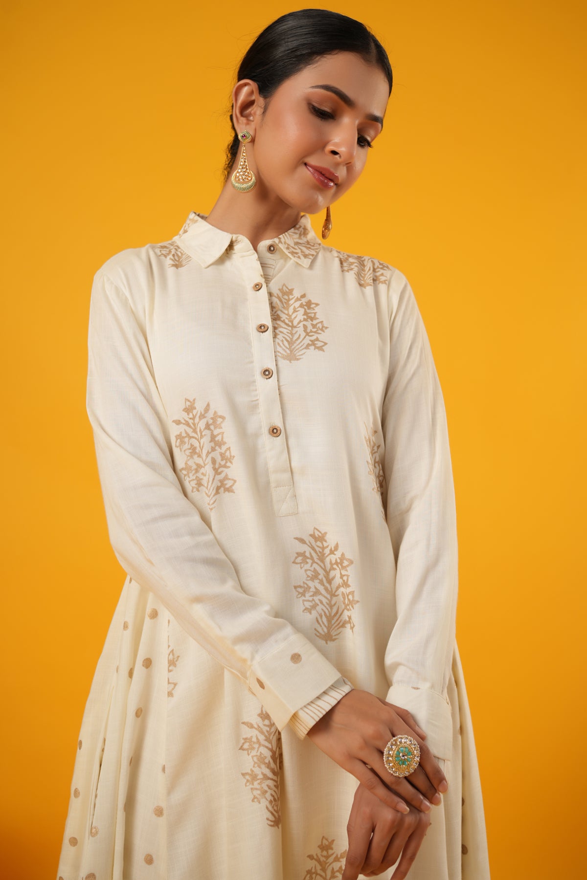 What makes this Kanak Off White Block Print Festive Dress truly unique