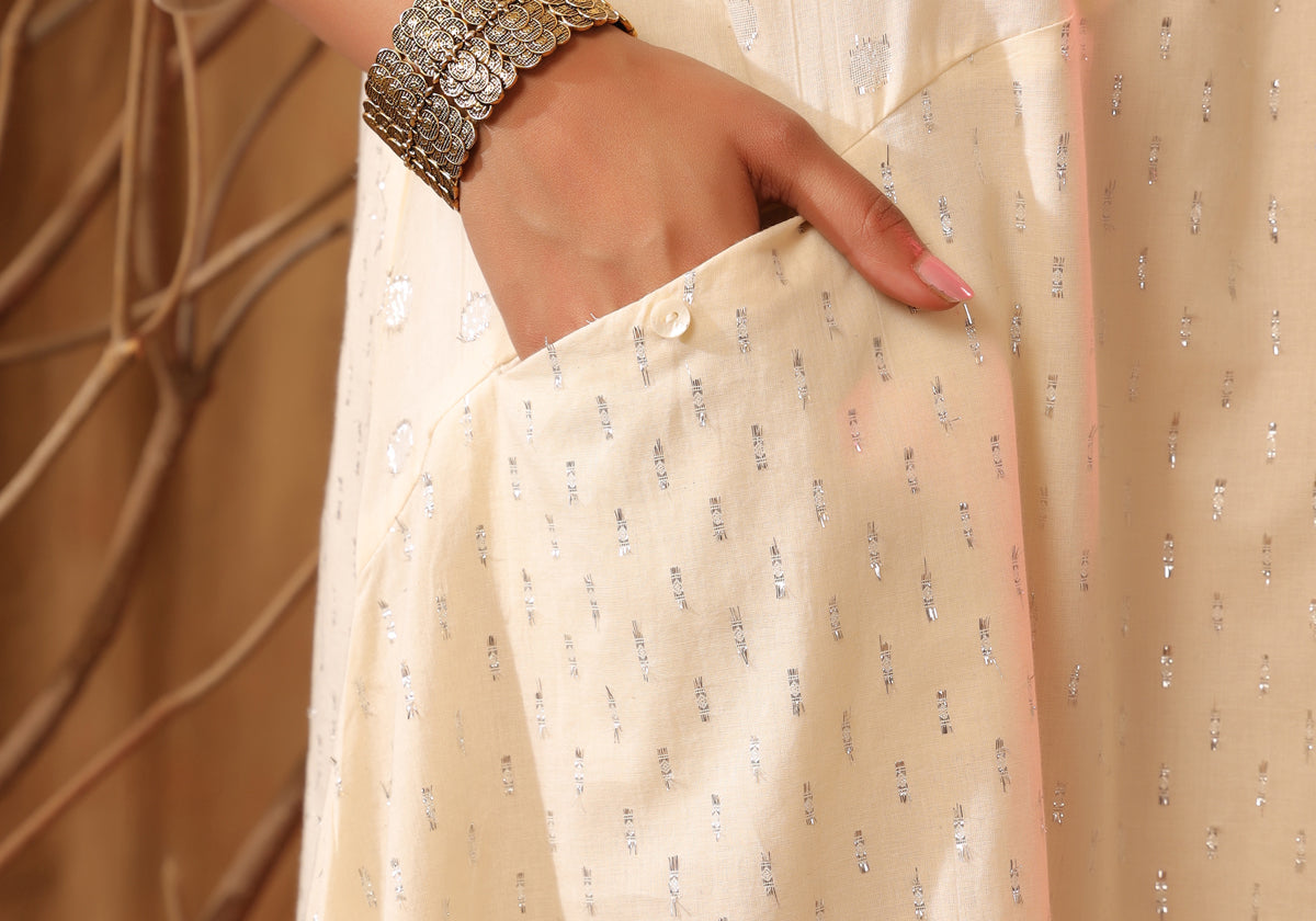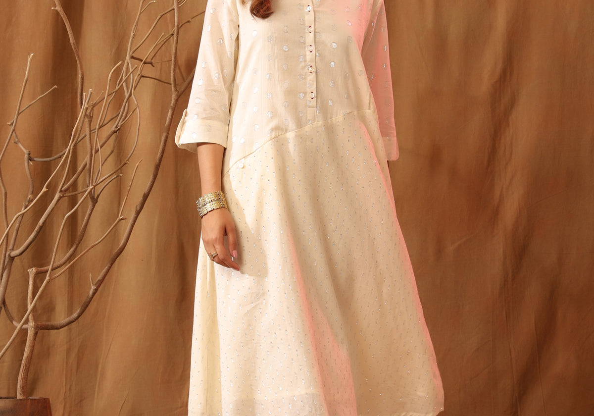 What makes this Anuradha Shimmery White Ethnic Dress truly unique