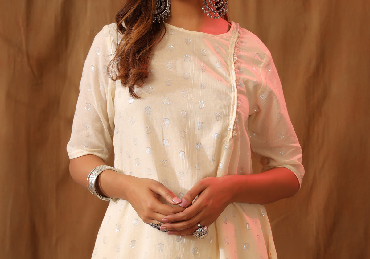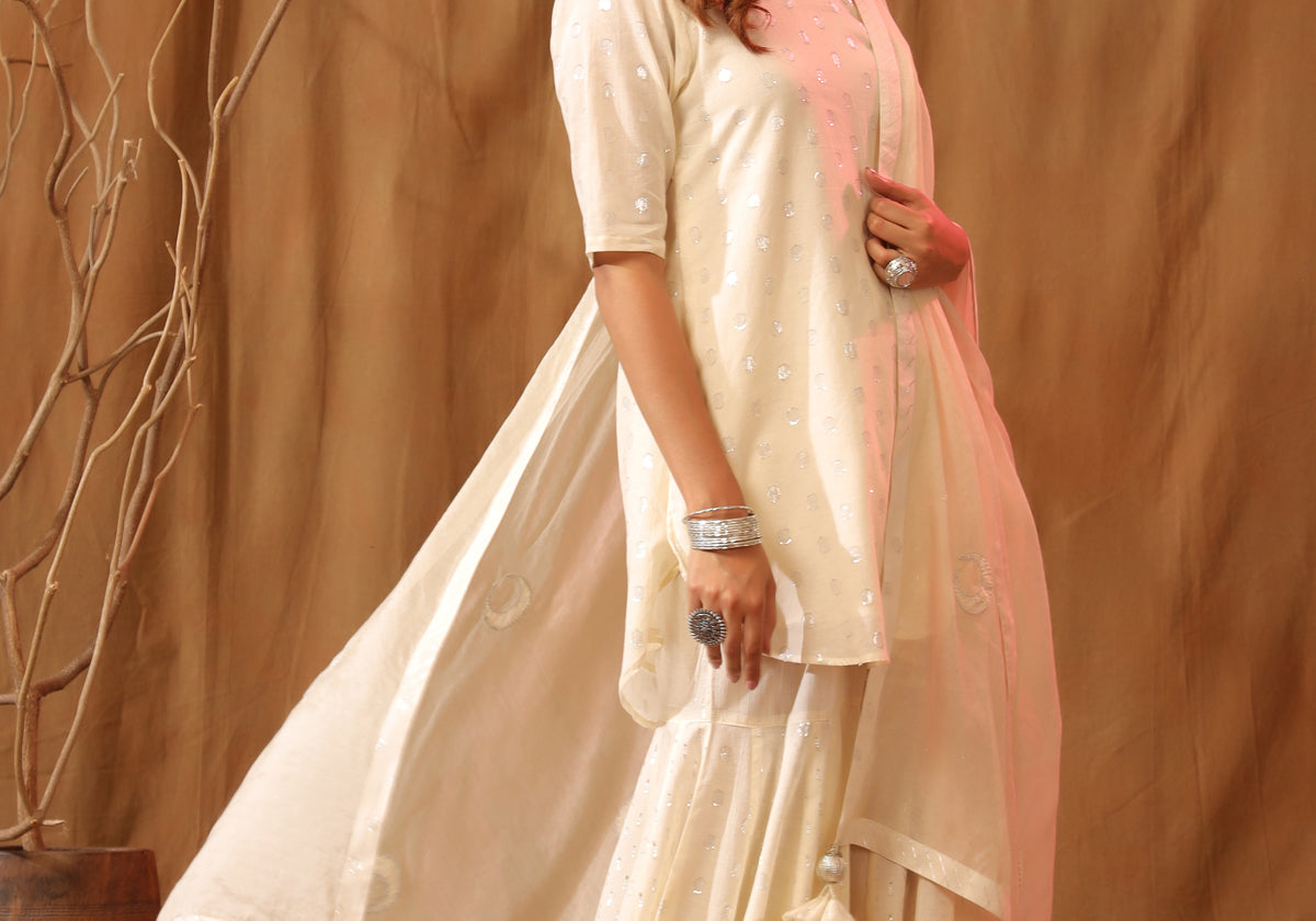 What makes this Rohini White Shimmery Festive Kurta Set of 3 truly unique