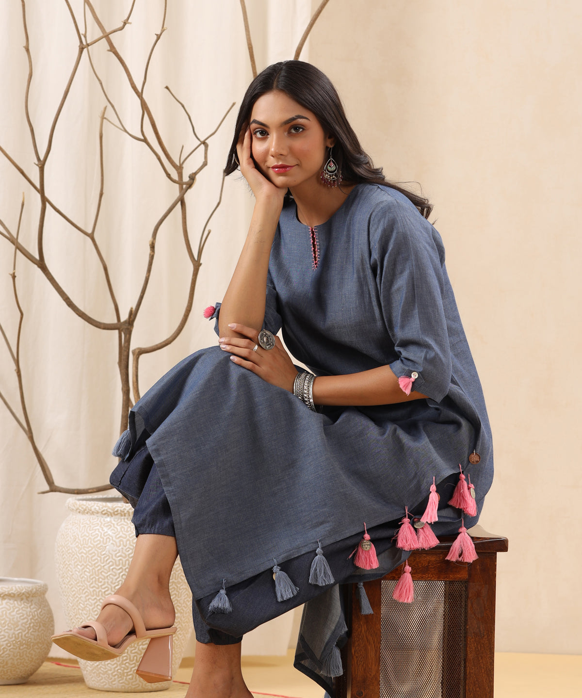 I wish I could wear this kurta every day, the fabric the print, the colour - everything is just perfect for my taste. & then the hand detailing which makes it my favourite garment.
