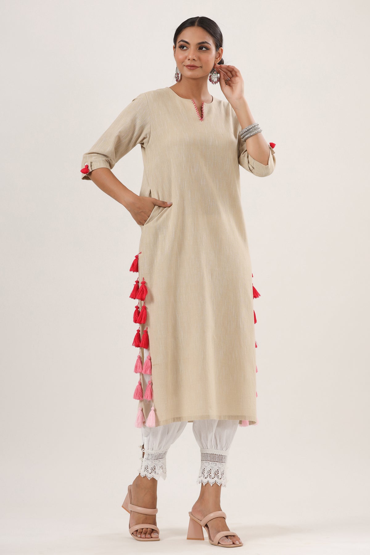 What makes this Beige Trendy Straight Cotton Kurta truly unique