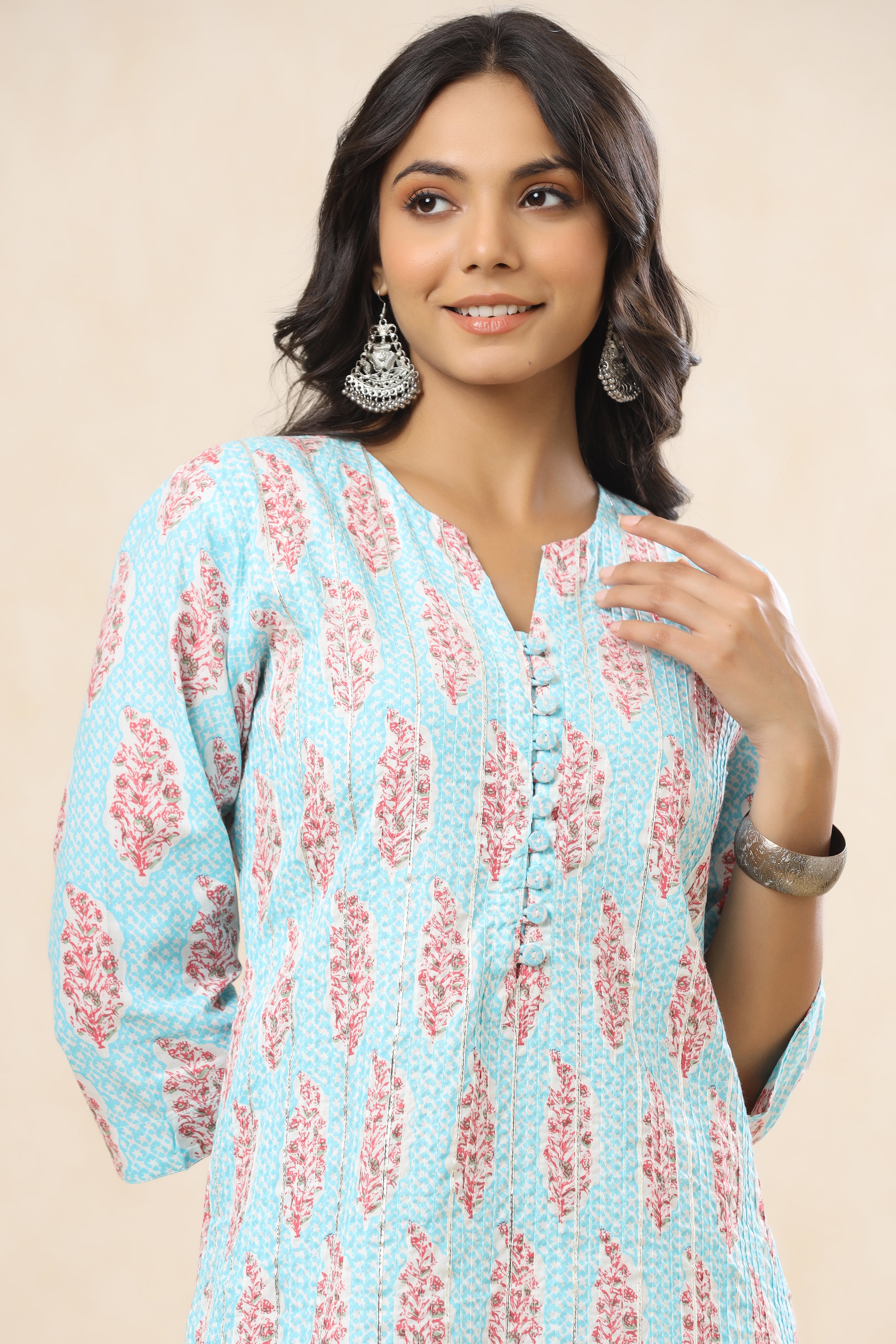 What makes this Blue Cosmos Pintucks Kurta truly unique