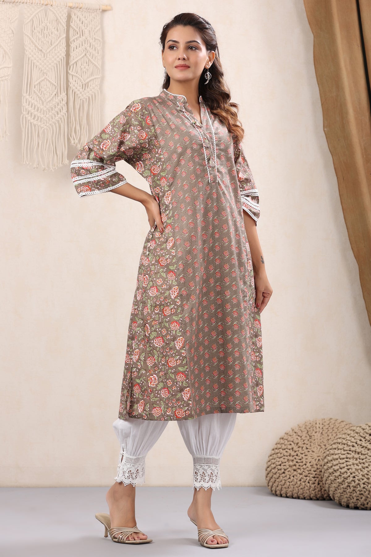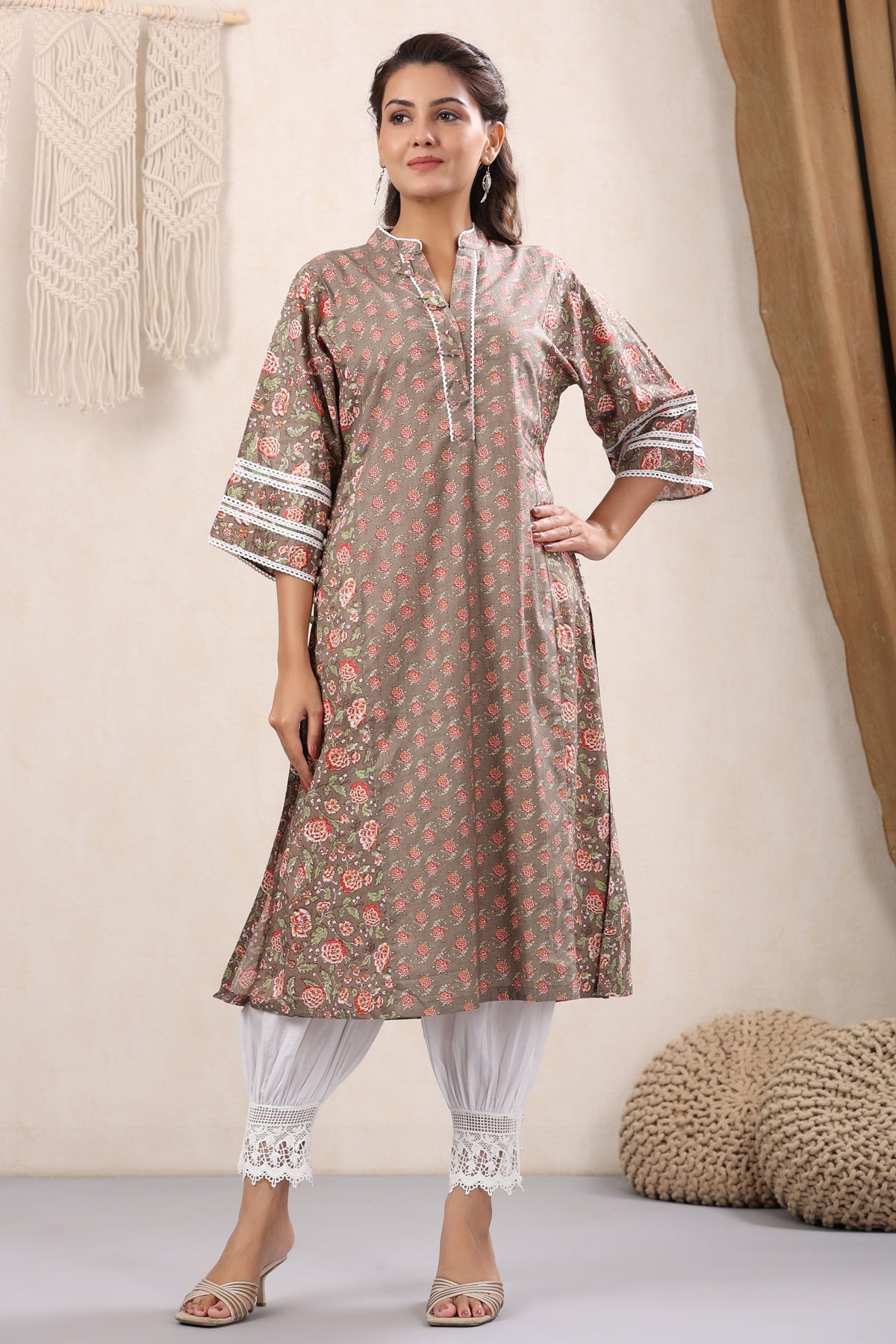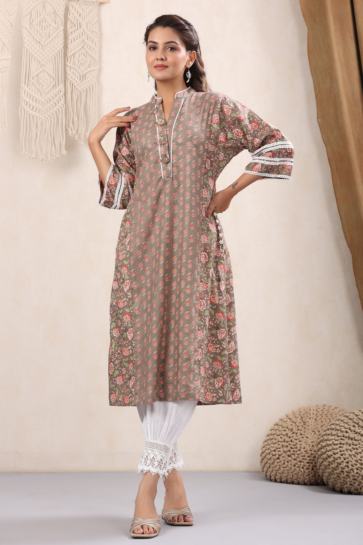 What makes this Chocolaty Floral Printed Cotton Kurta truly unique