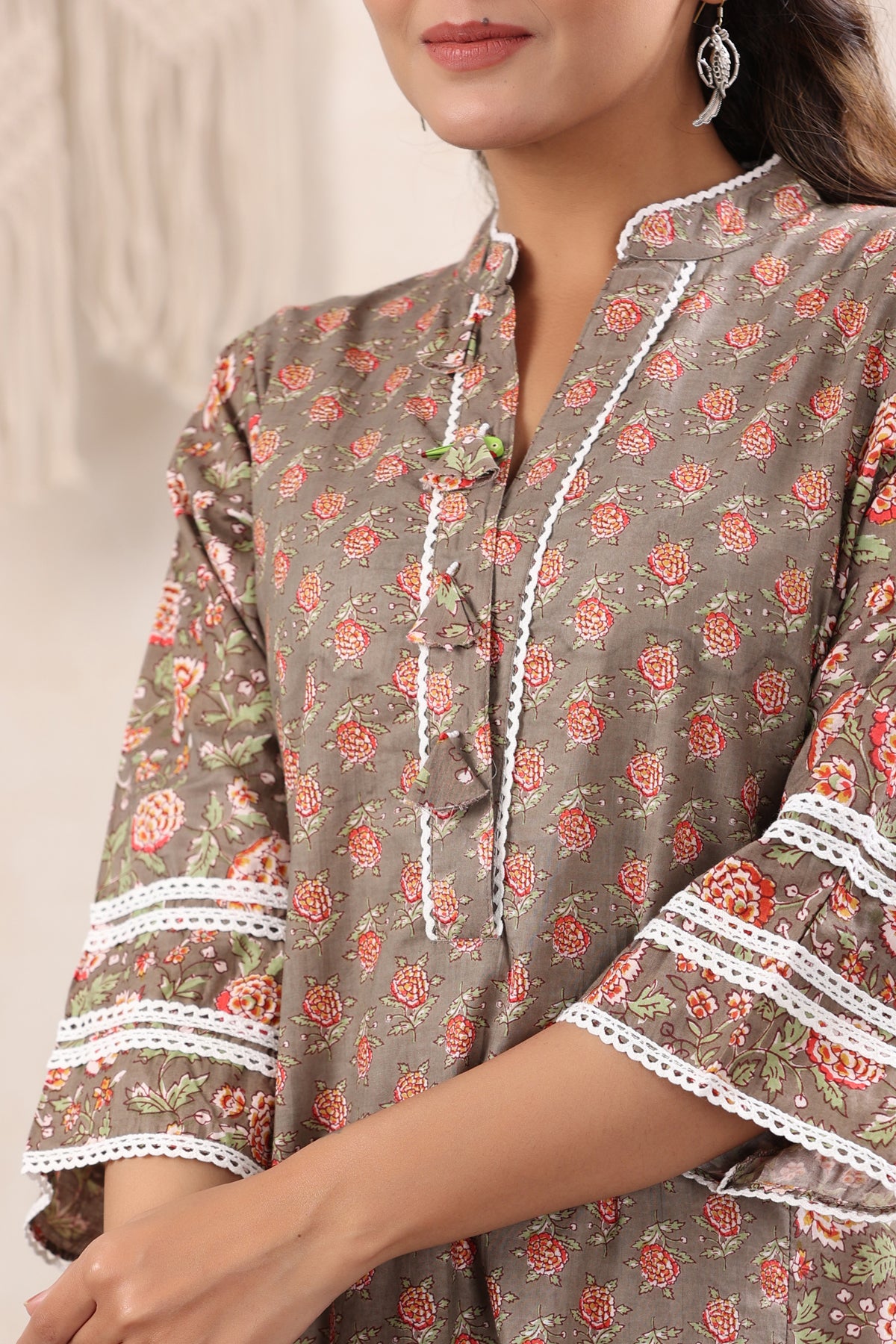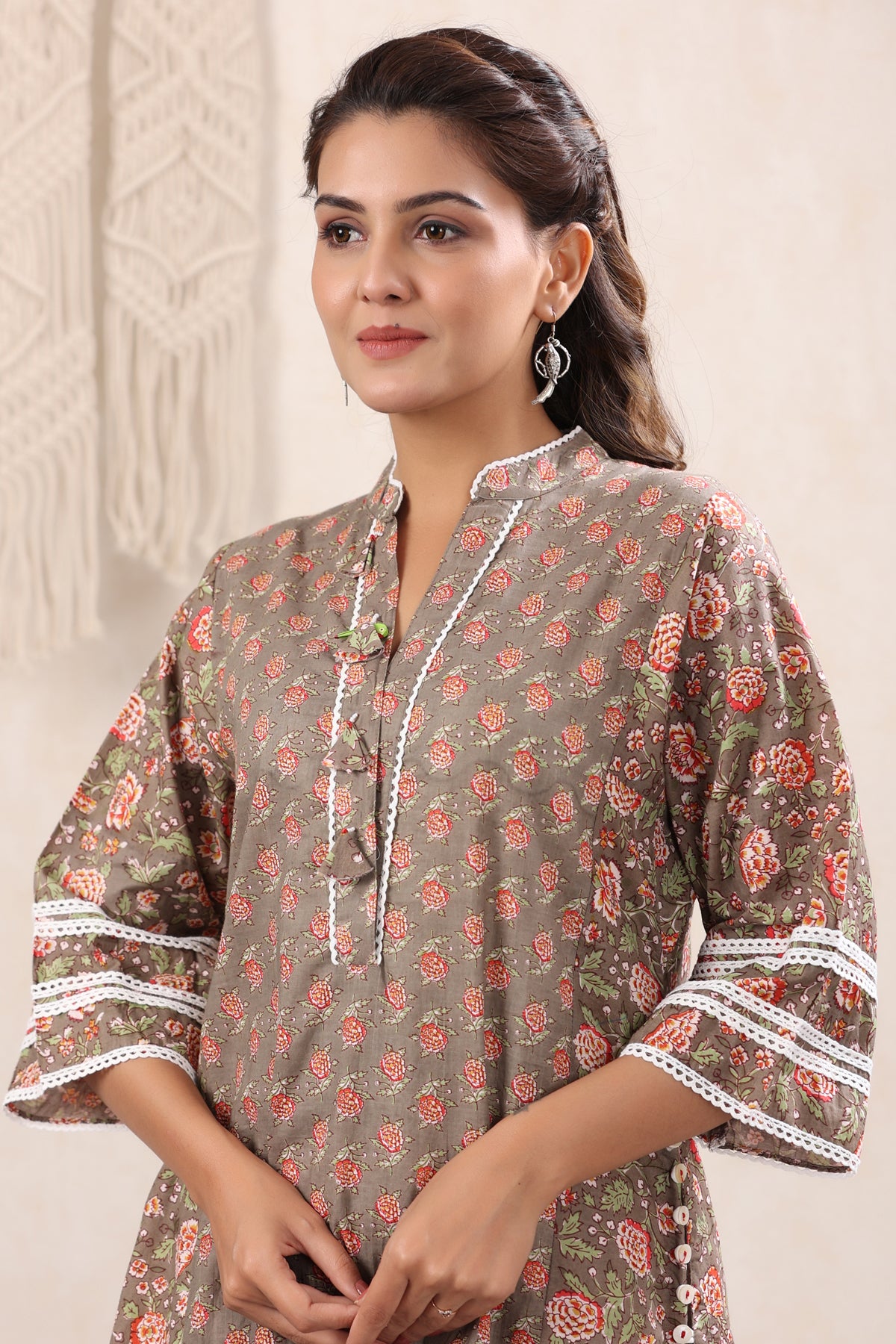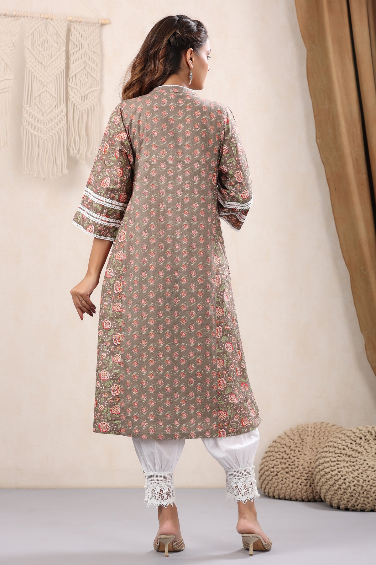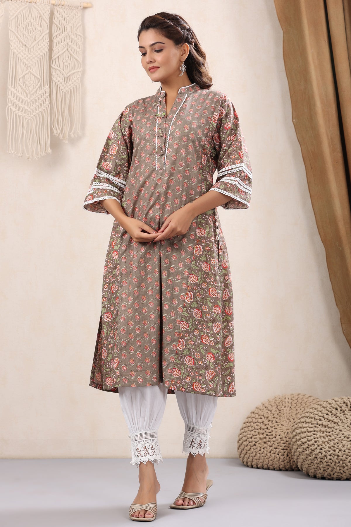 What makes this Chocolaty Floral Printed Cotton Kurta truly unique