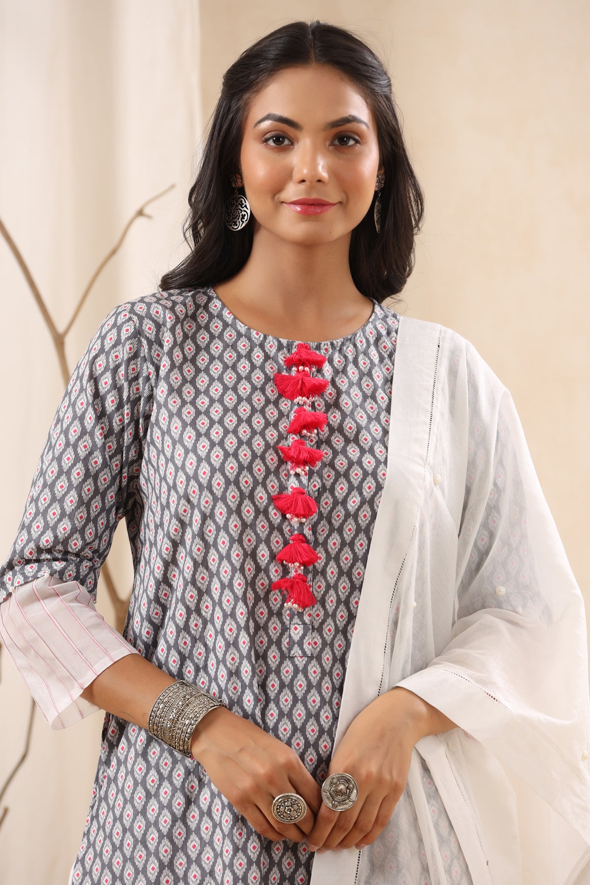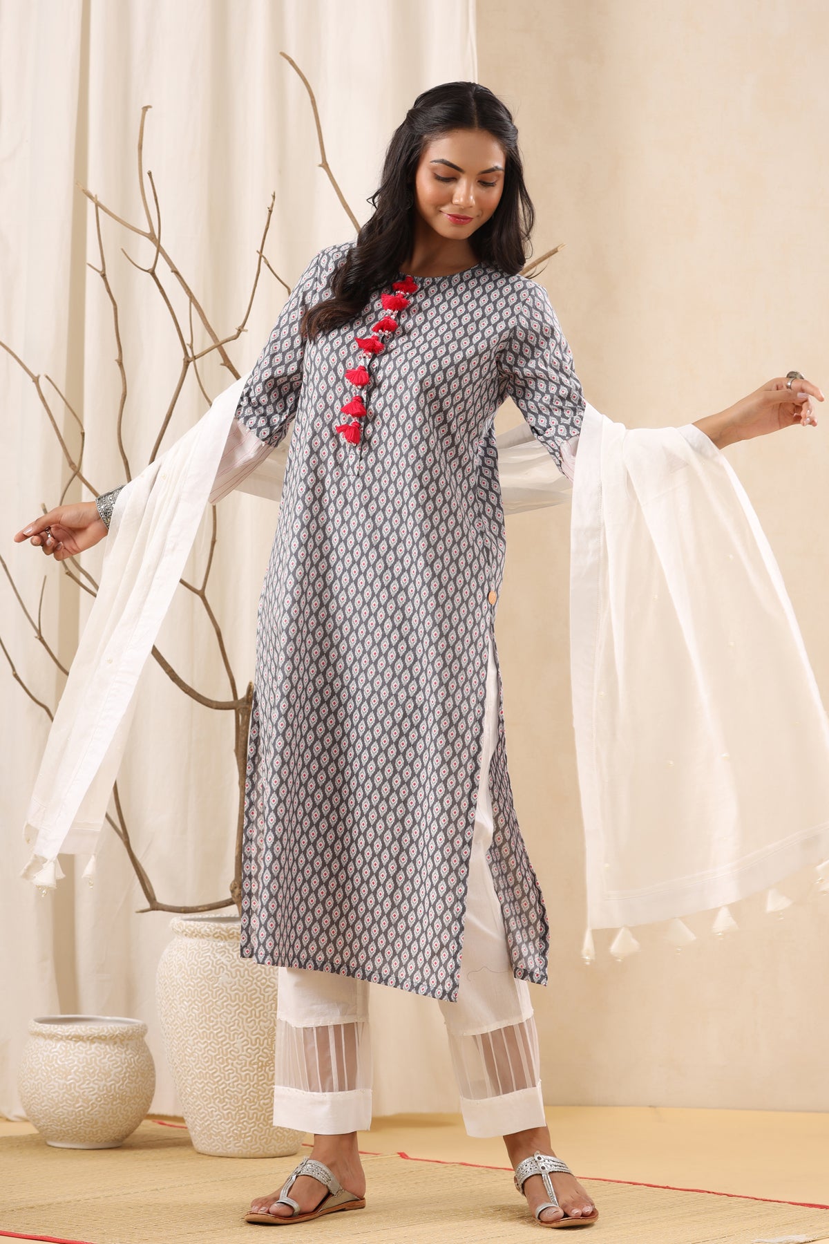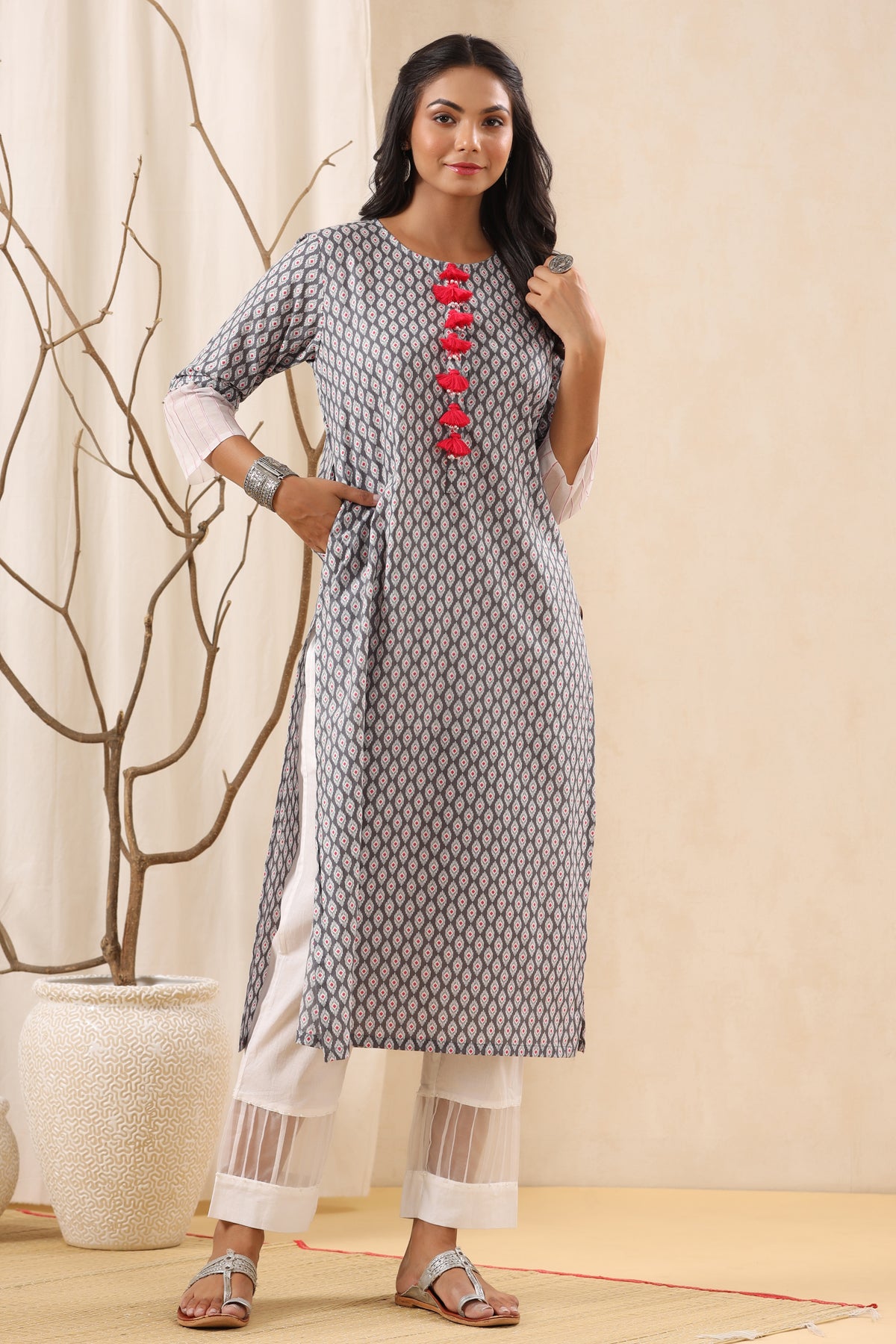 What makes this Harlequin Print Grey Cotton Kurta truly unique