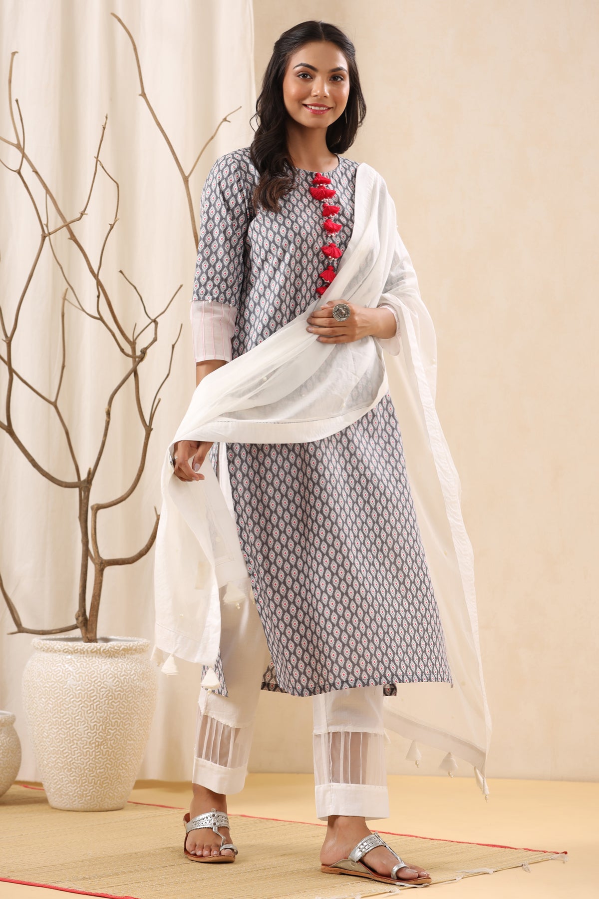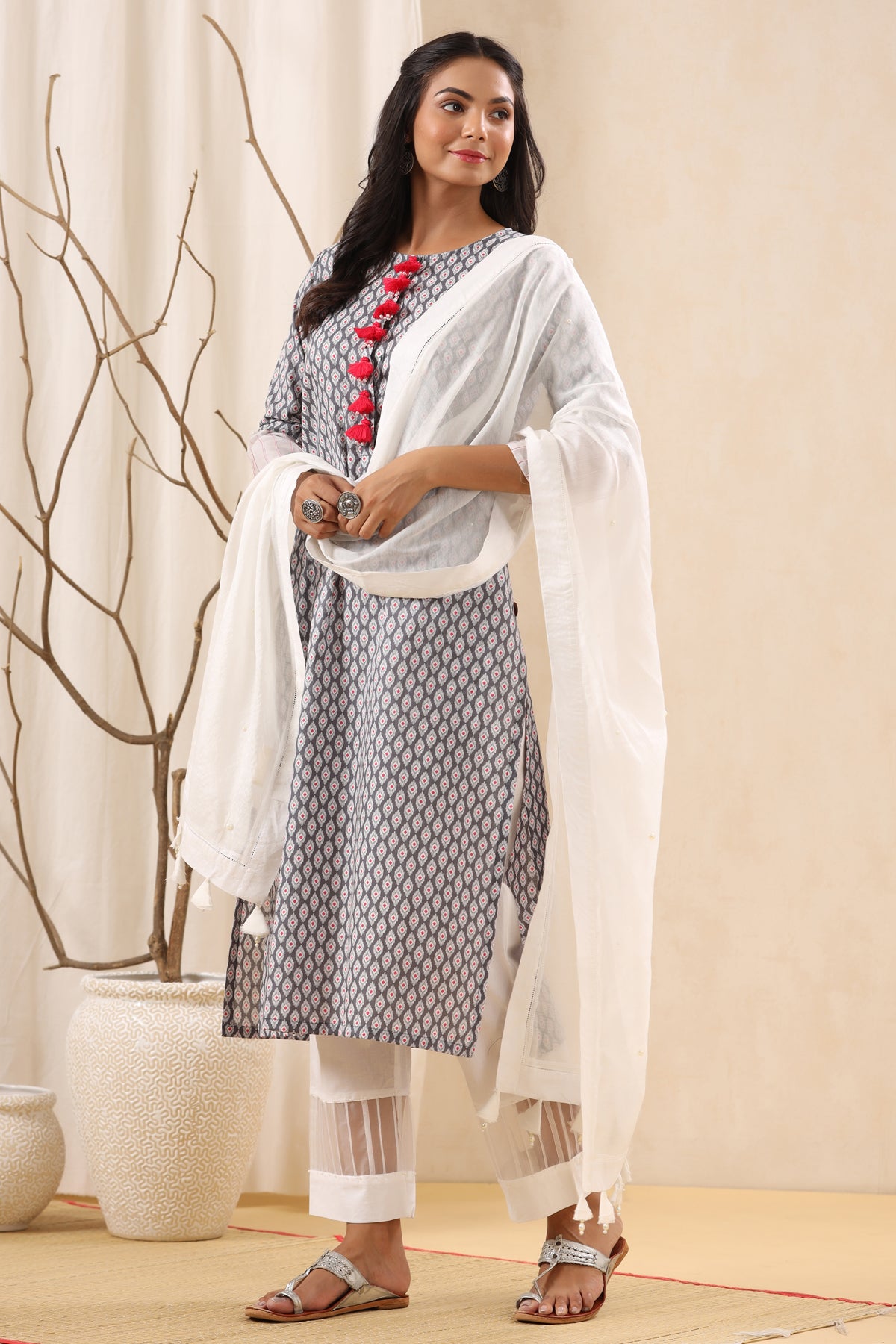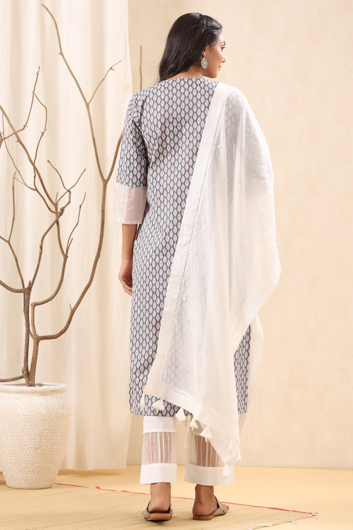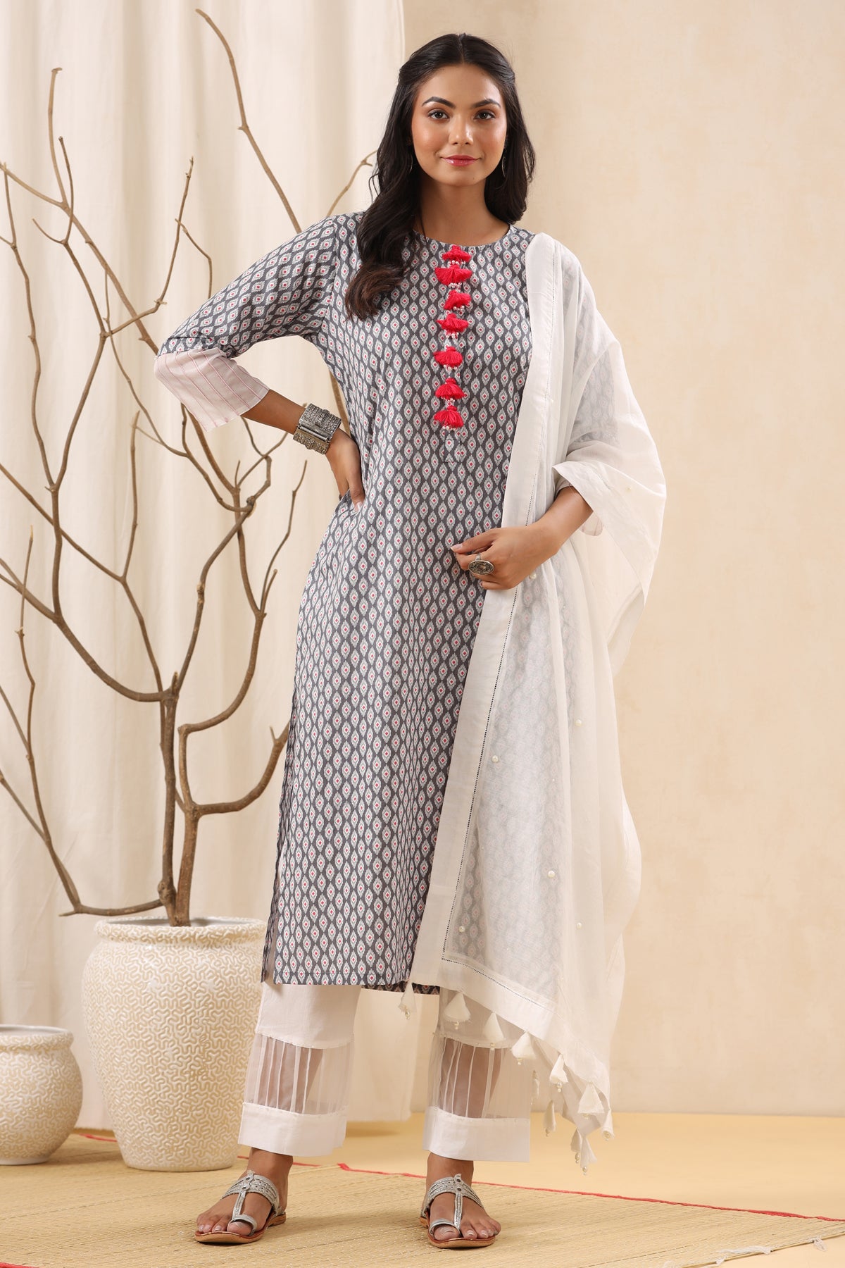 What makes this Harlequin Print Grey Cotton Kurta truly unique
