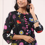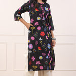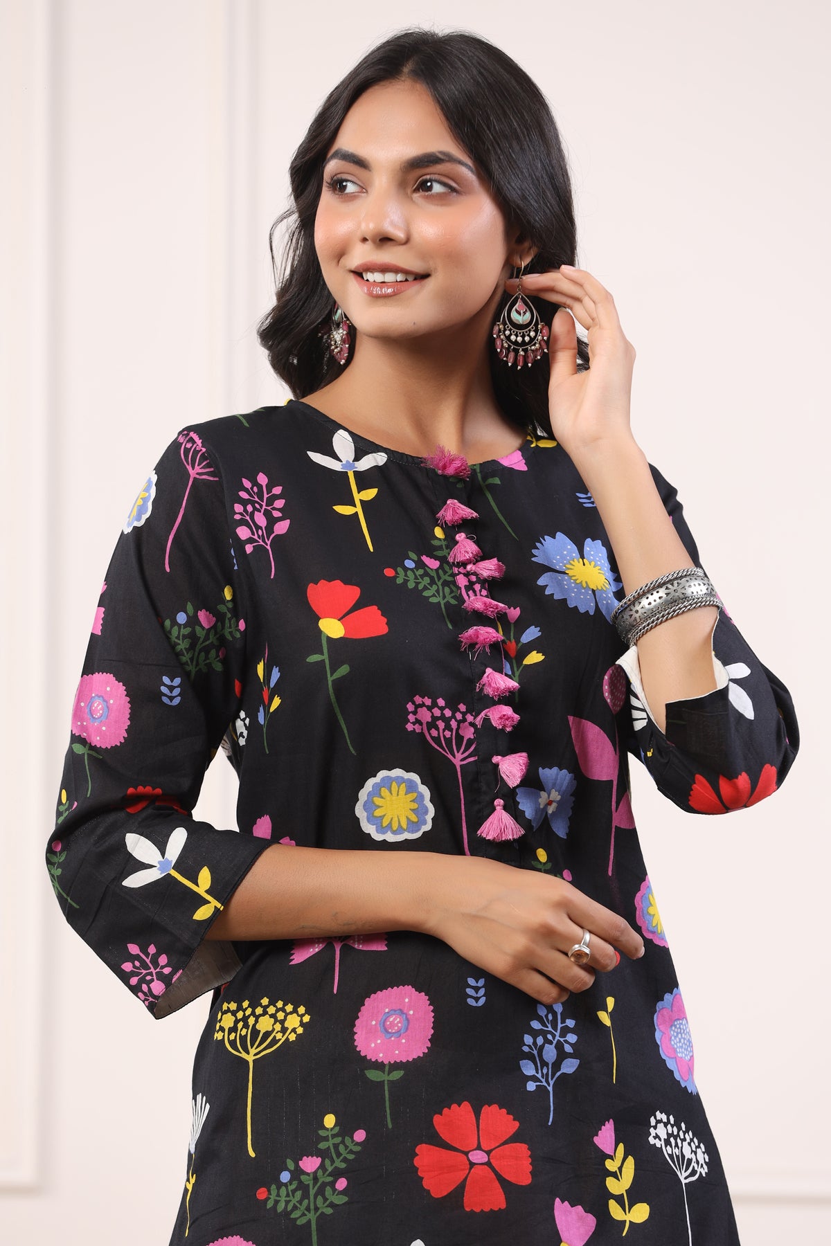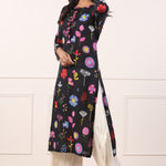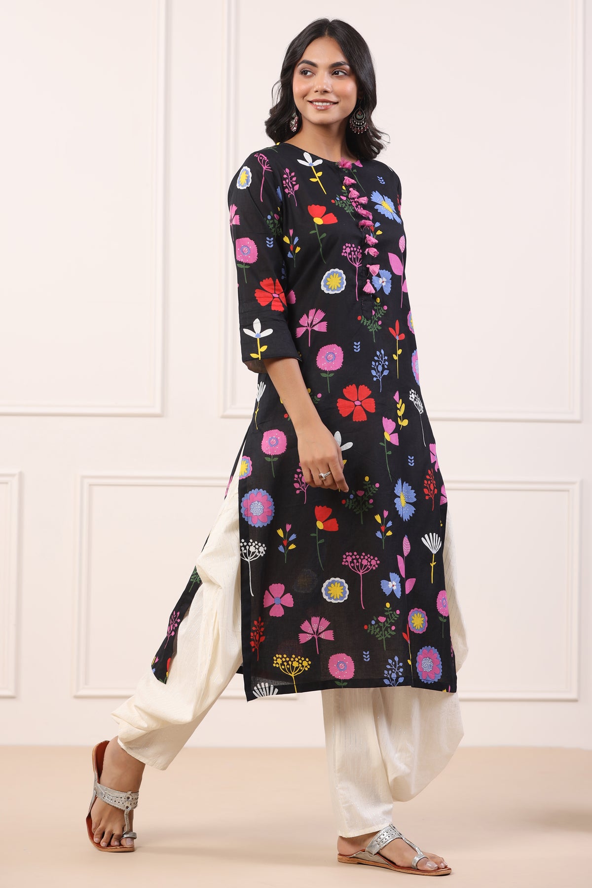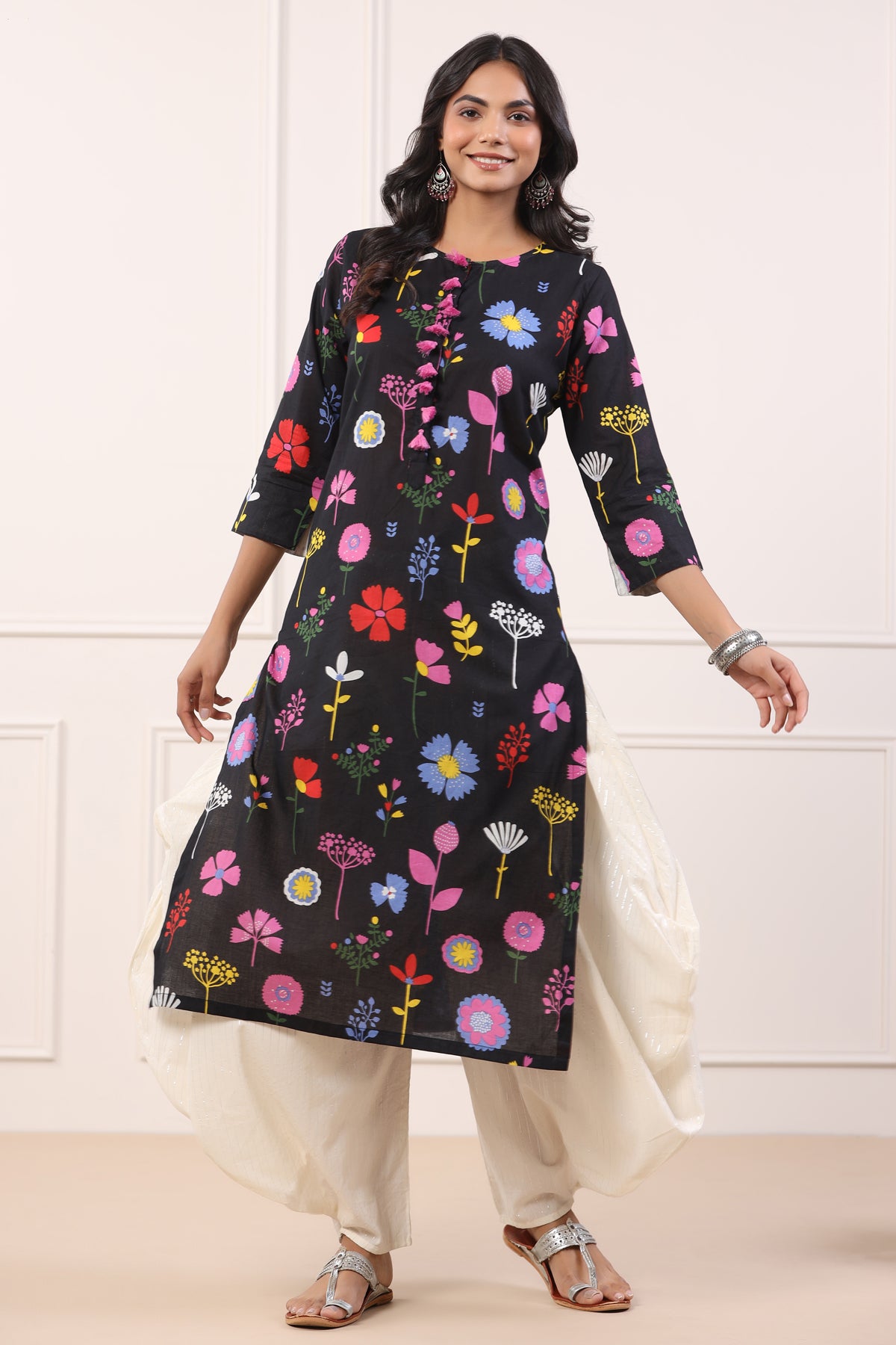 What makes this Mayori Black Floral Straight Cotton Kurta truly unique