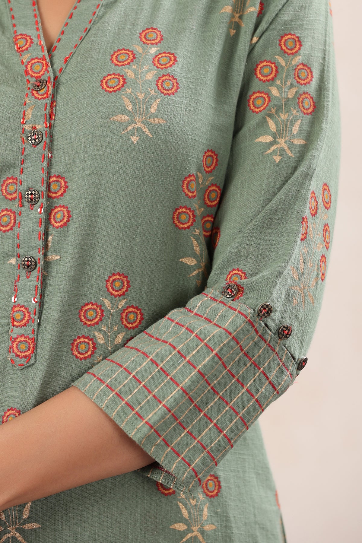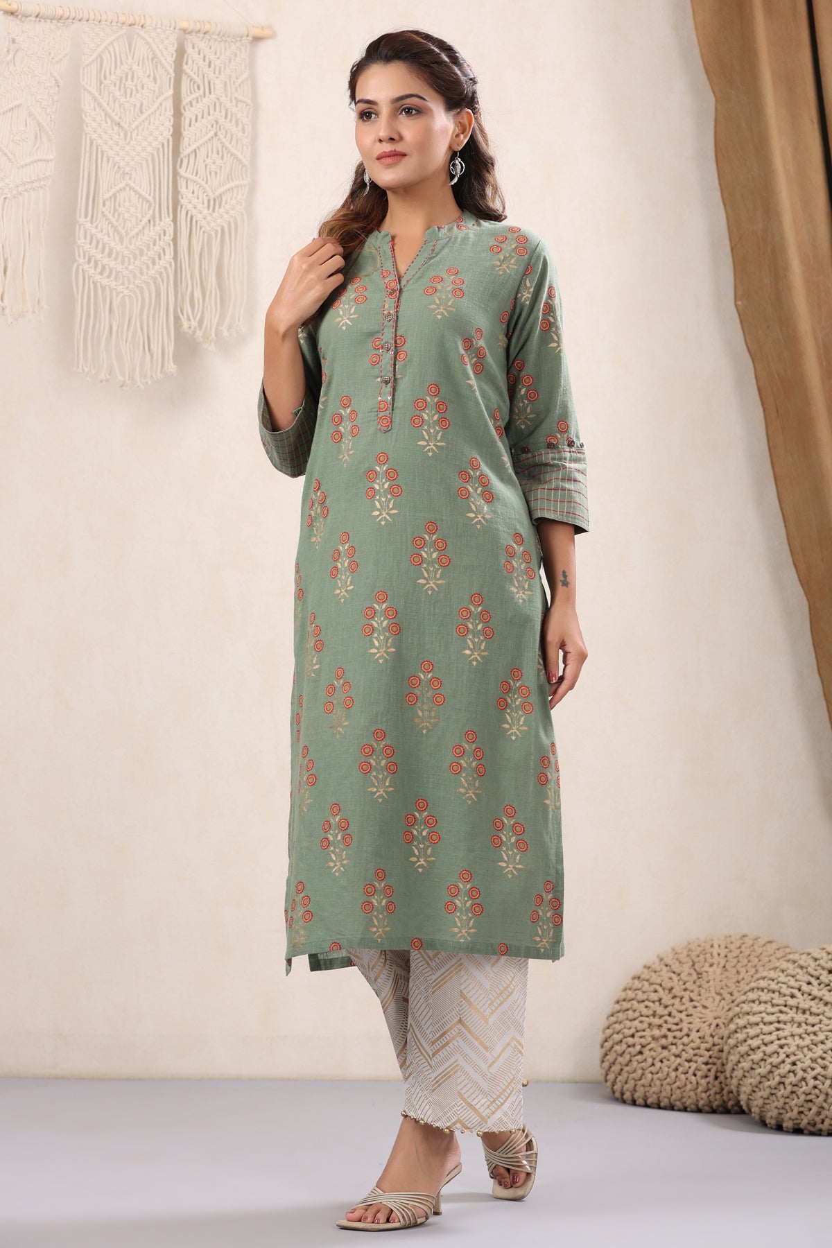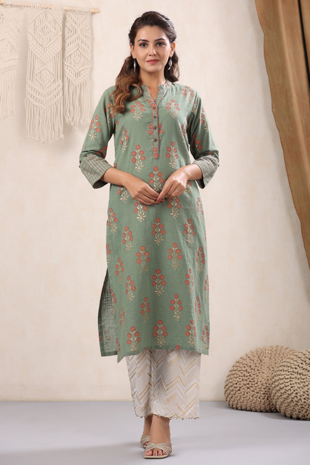 What makes this Moss Green Floral Cotton Kurta truly unique