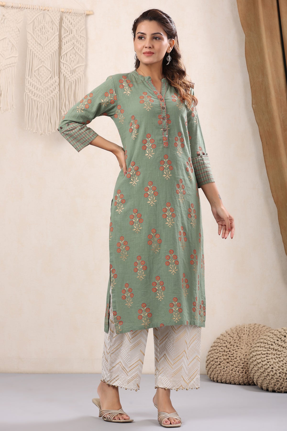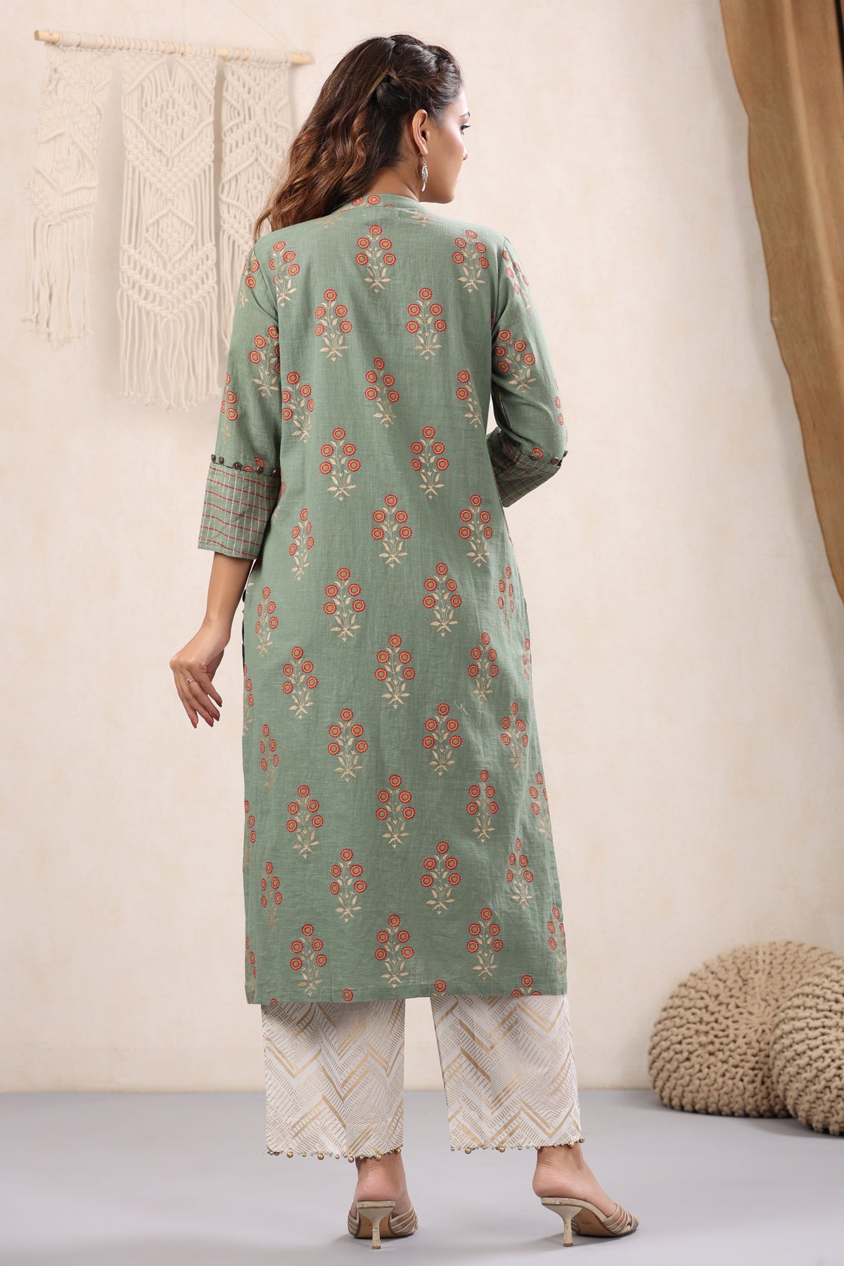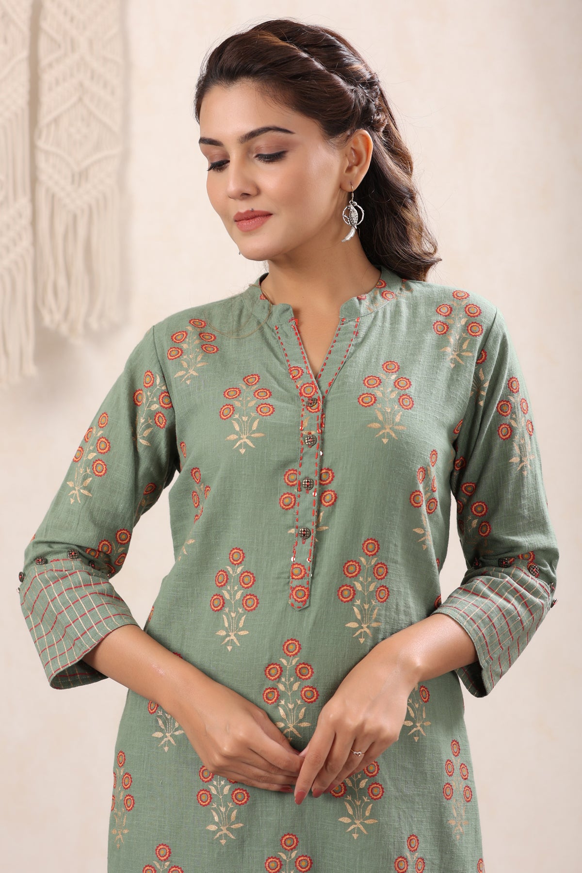 What makes this Moss Green Floral Cotton Kurta truly unique