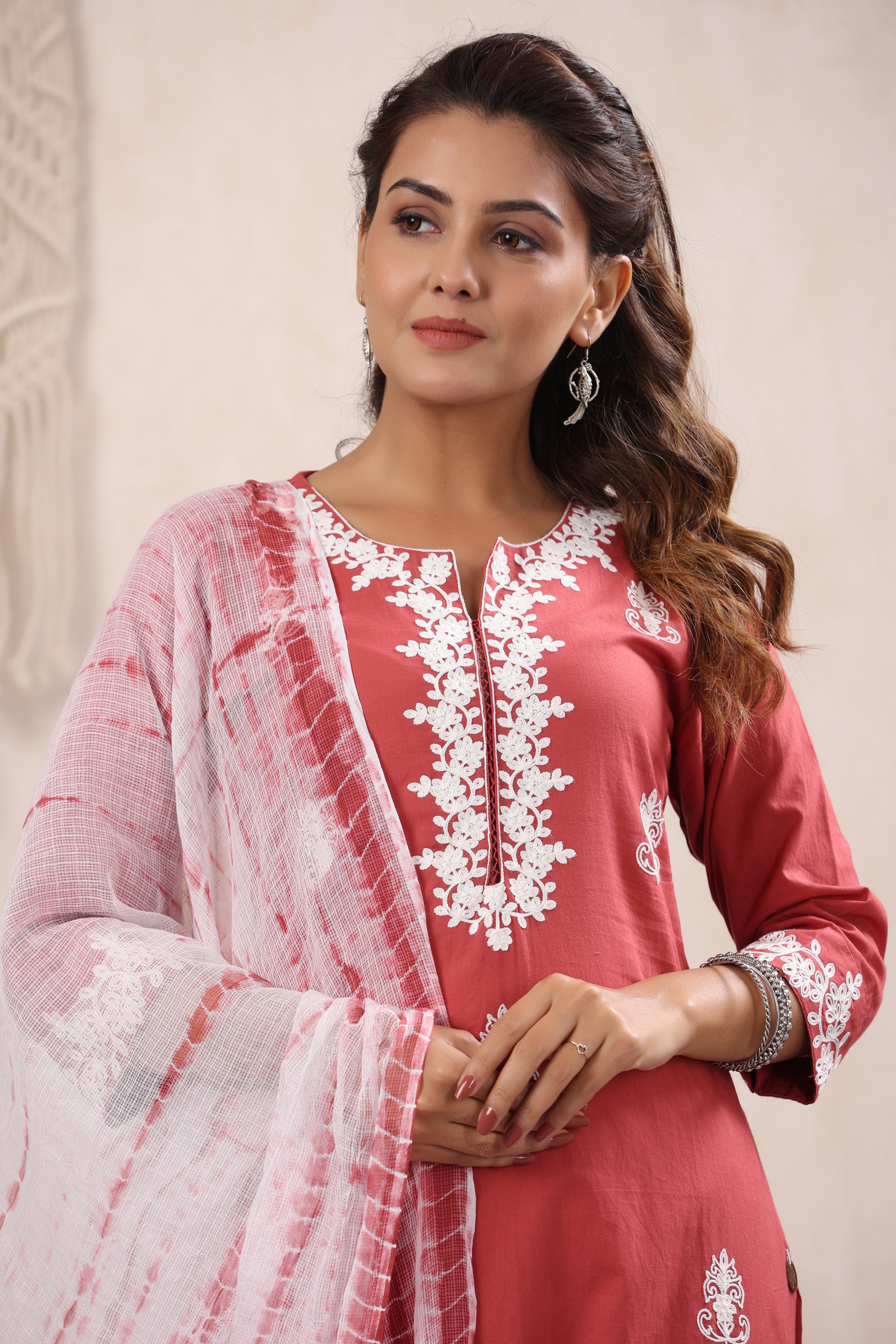 What makes this Nawabi Cotton Embroidered Kurta Set of 3 truly unique