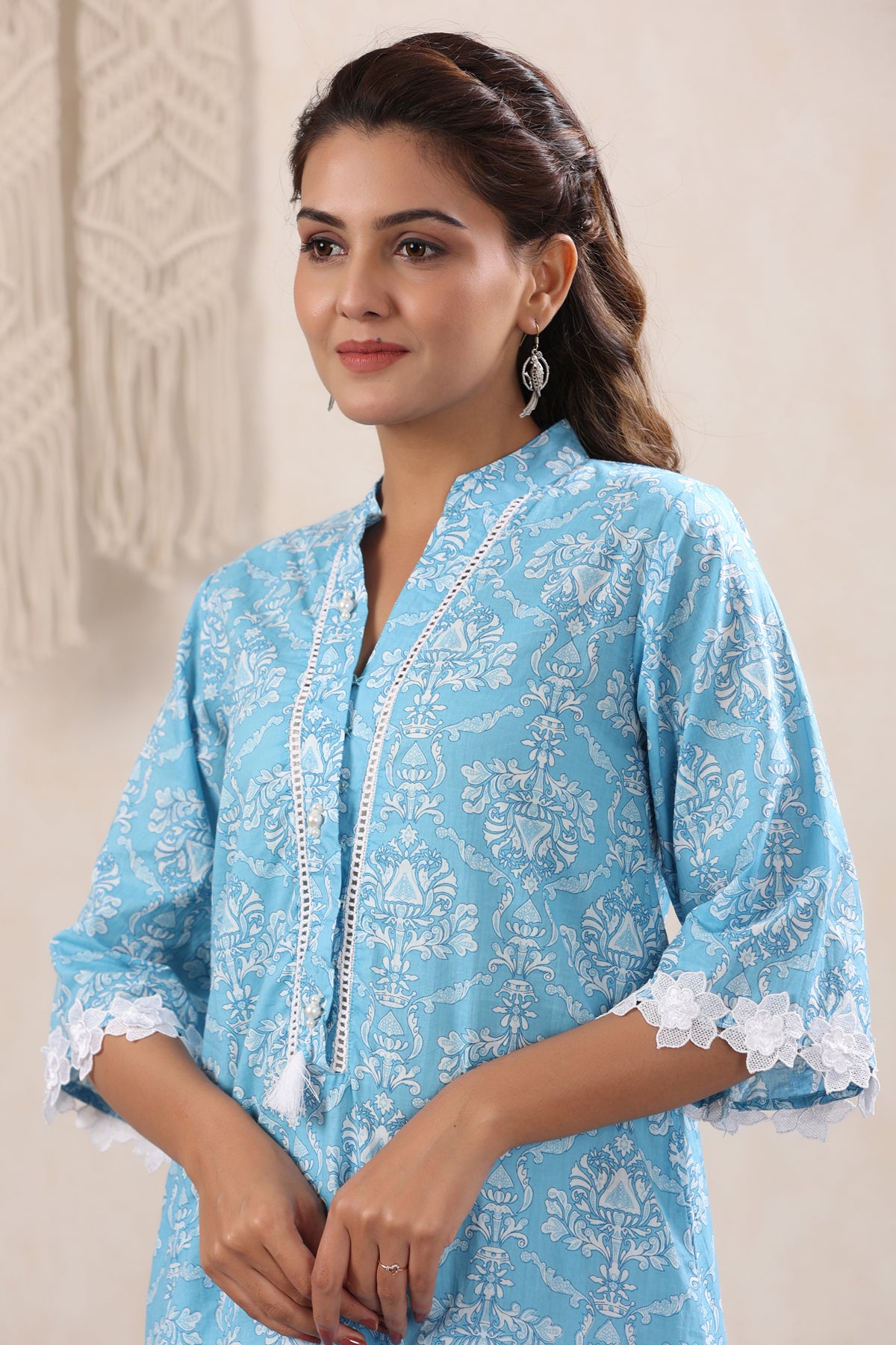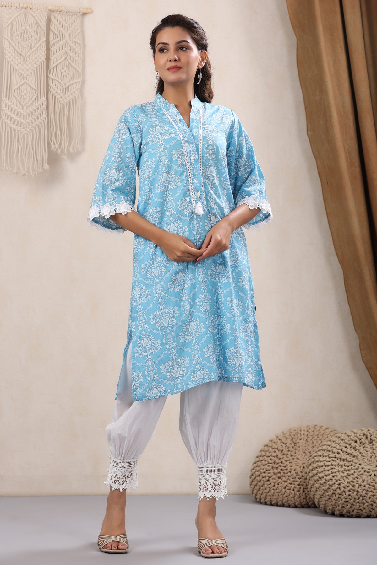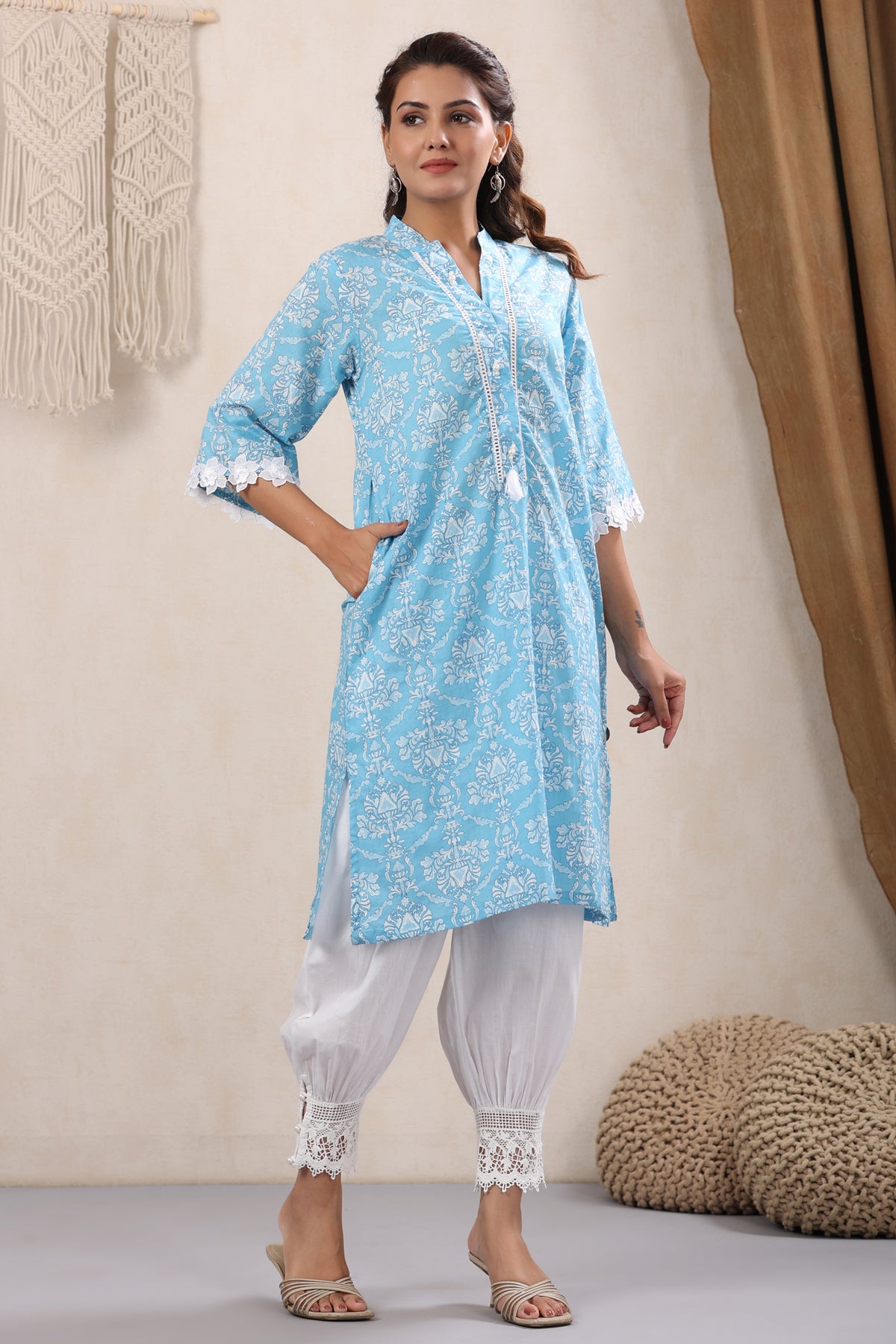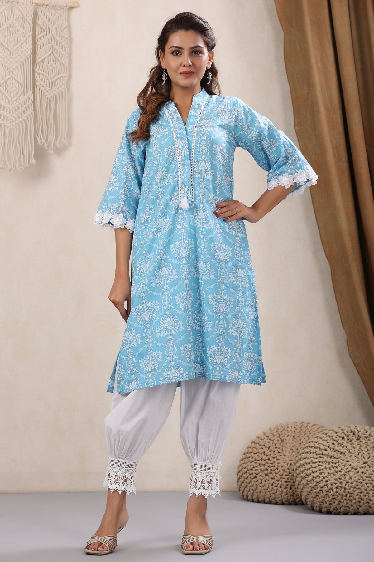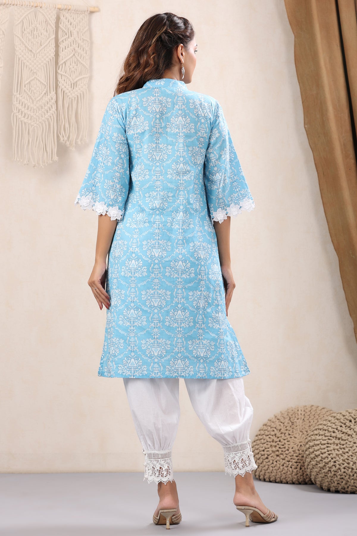 What makes this Skyblue Lace Detailing Kurta truly unique