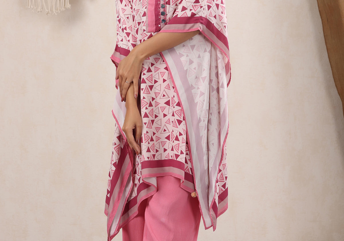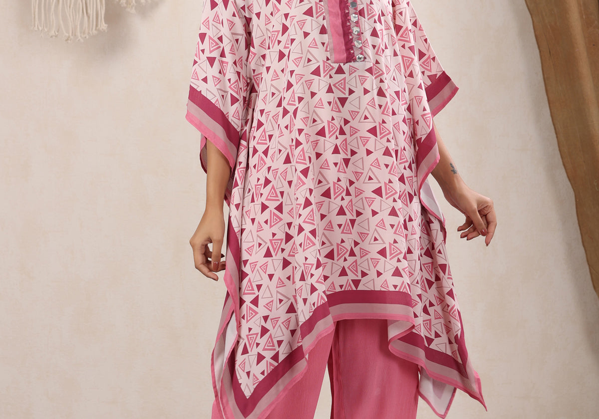 What makes this Inaayat Pinkish Kaftan Set truly unique
