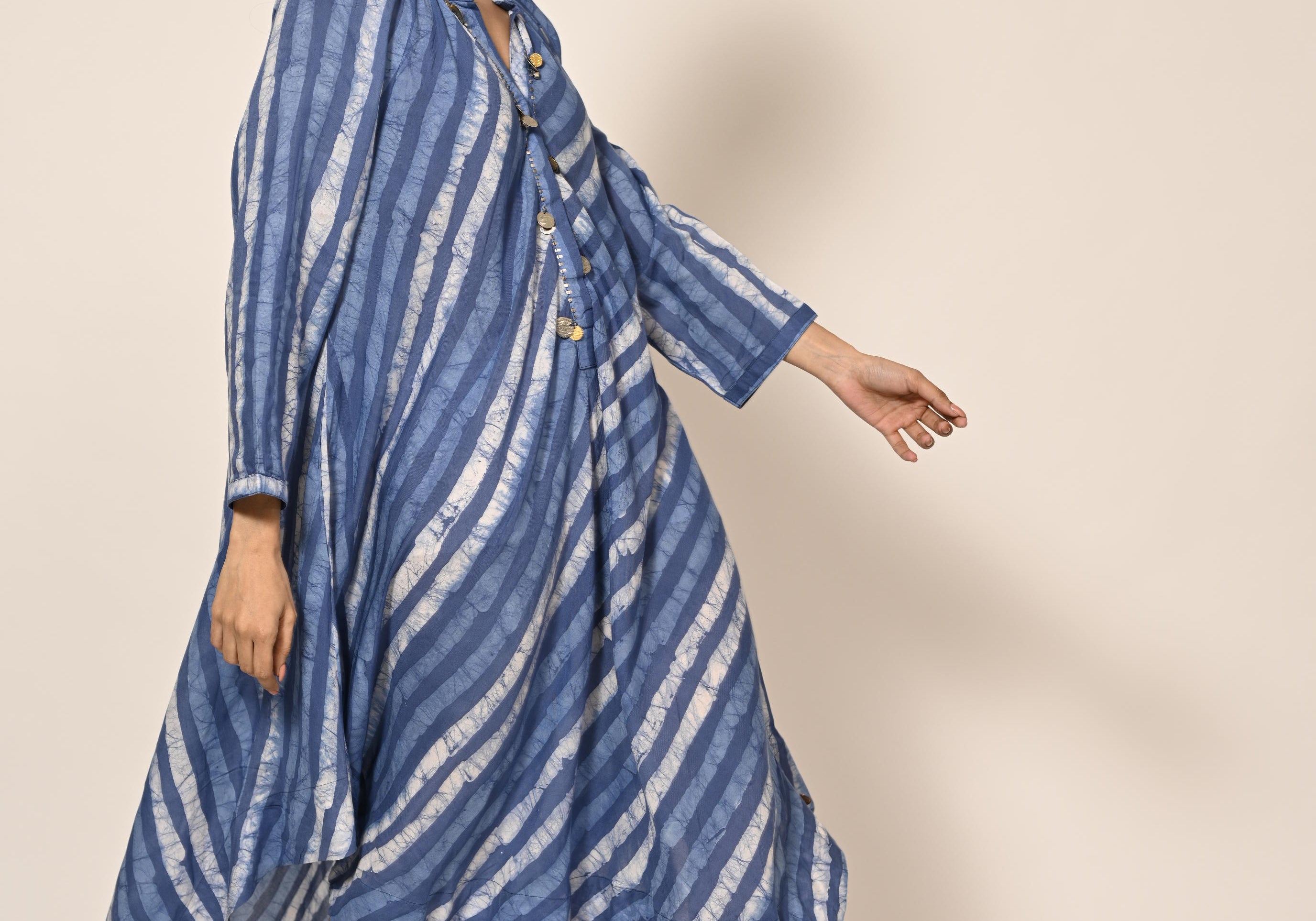 What makes this Zinnia Flared Blue Batik Dress truly unique