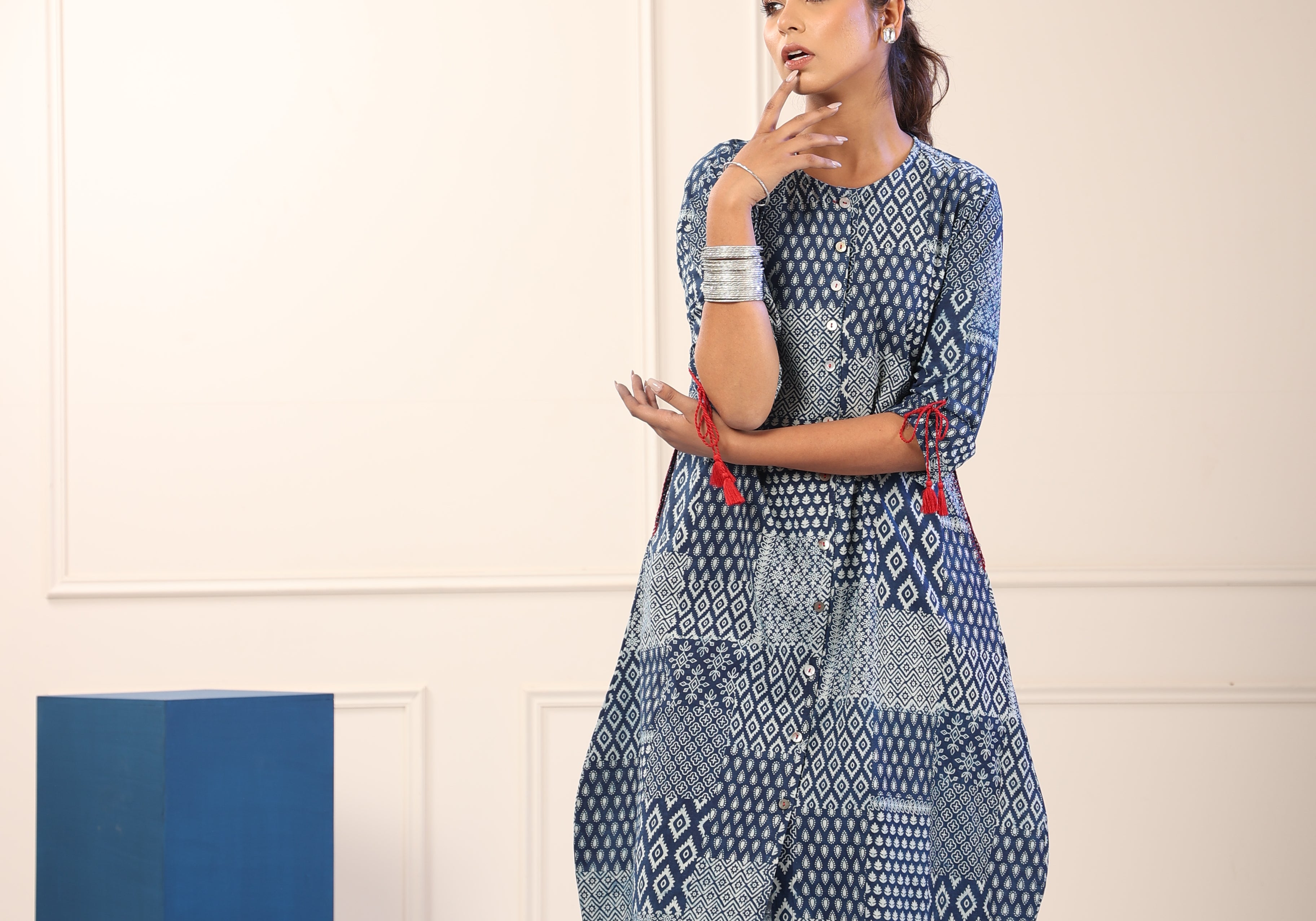 What makes this Harkha Indigo A-line Kurta truly unique