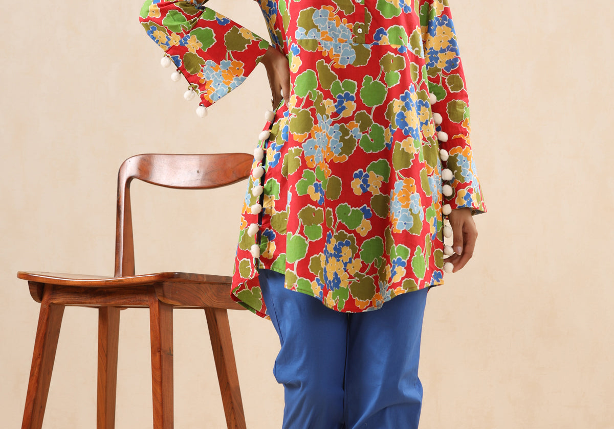 What makes this Bell Sleeves Flared Red Tunic truly unique
