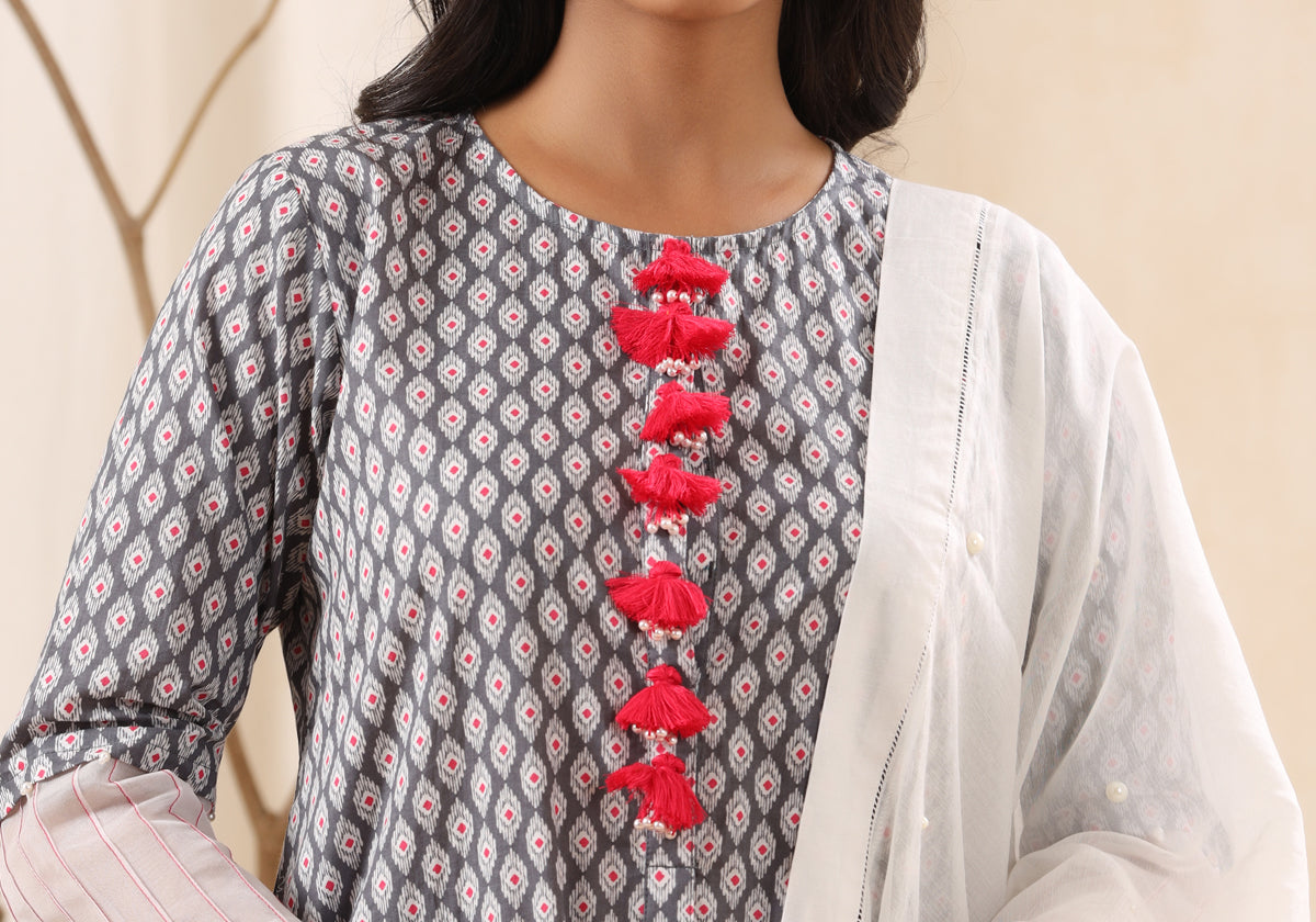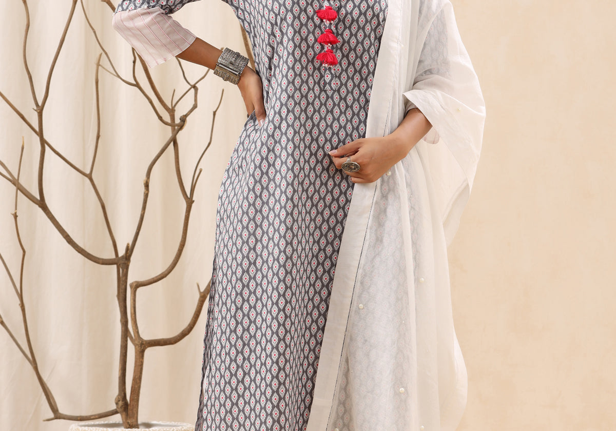 What makes this Harlequin Print Grey Cotton Kurta truly unique