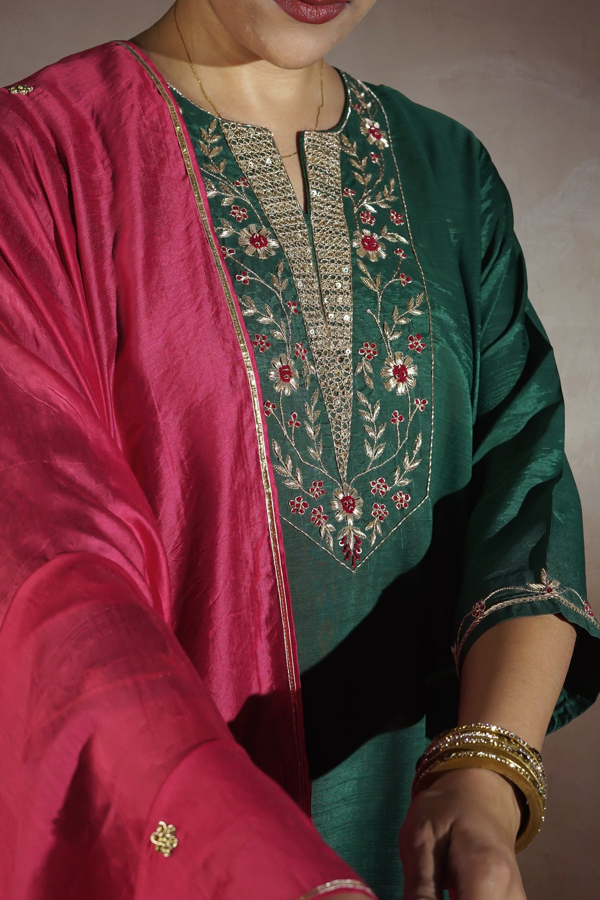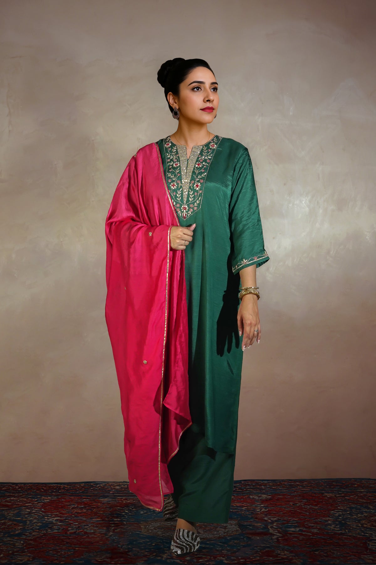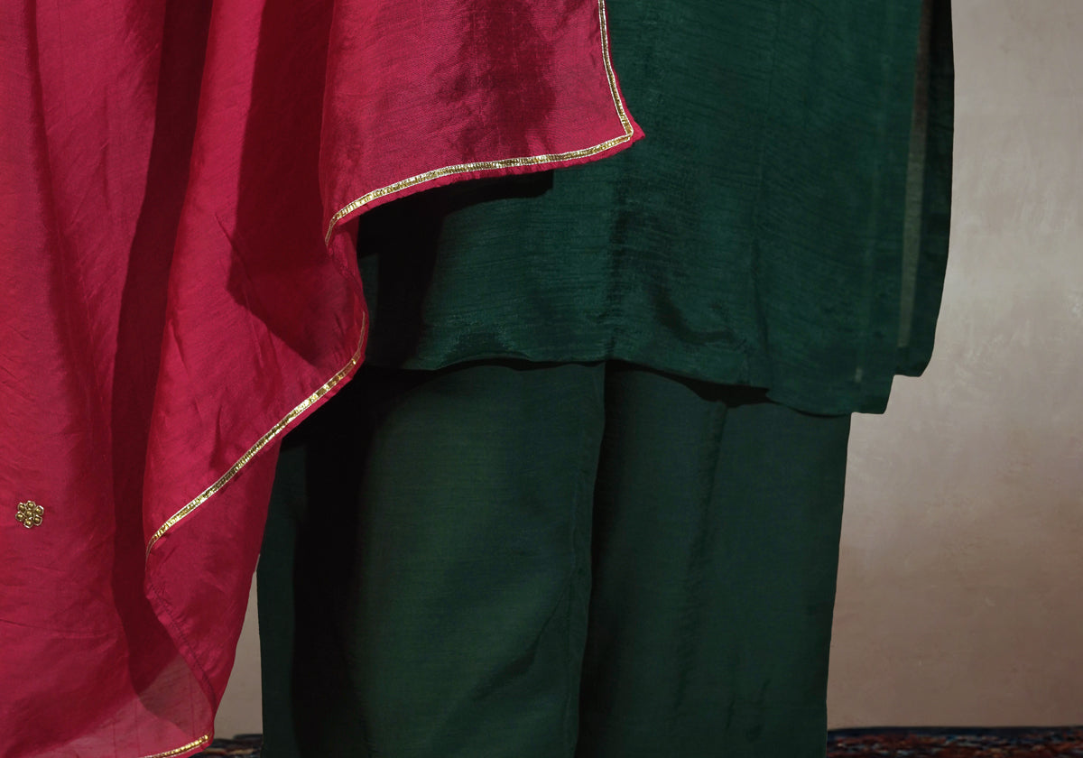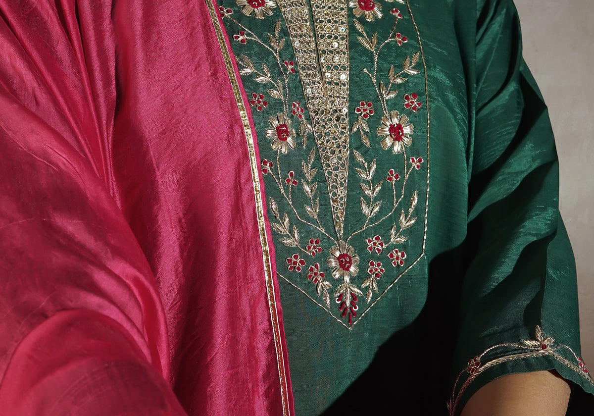 What makes this Gulzaar Green Embroidered Festive Kurta Set with Dupatta truly unique