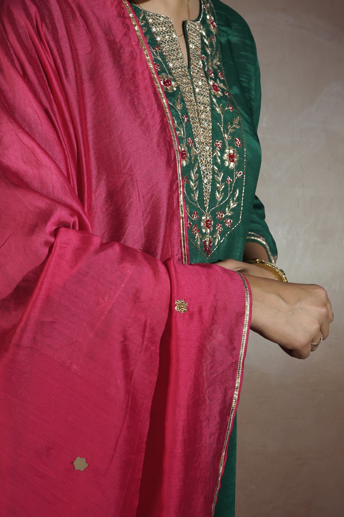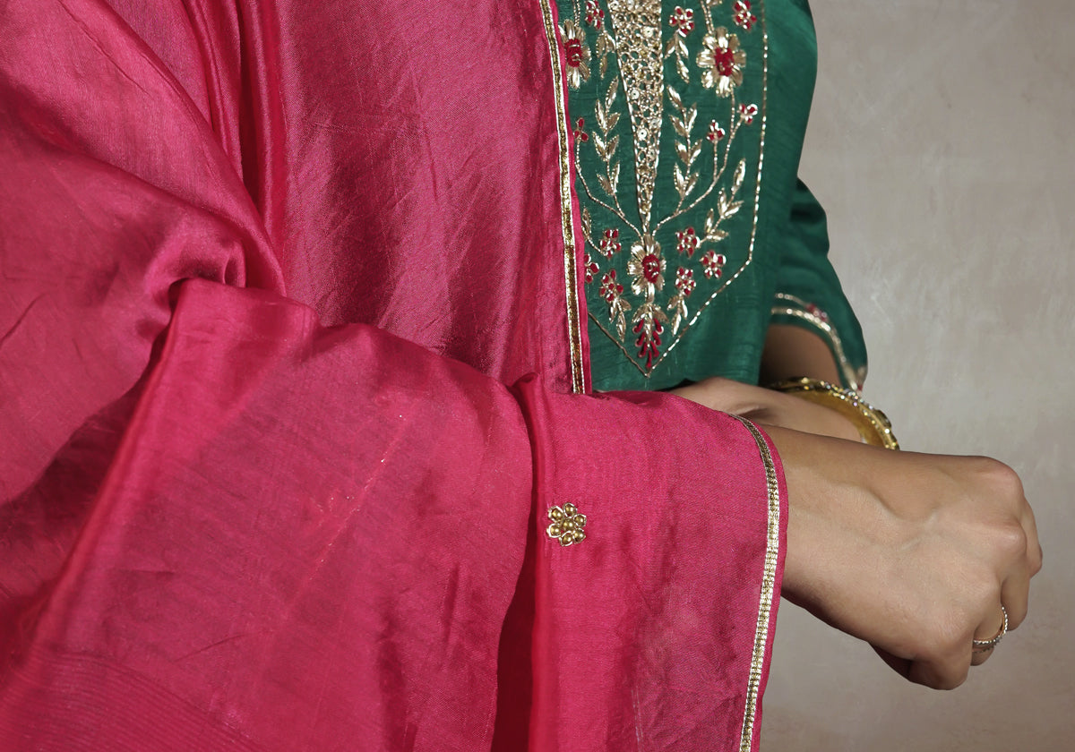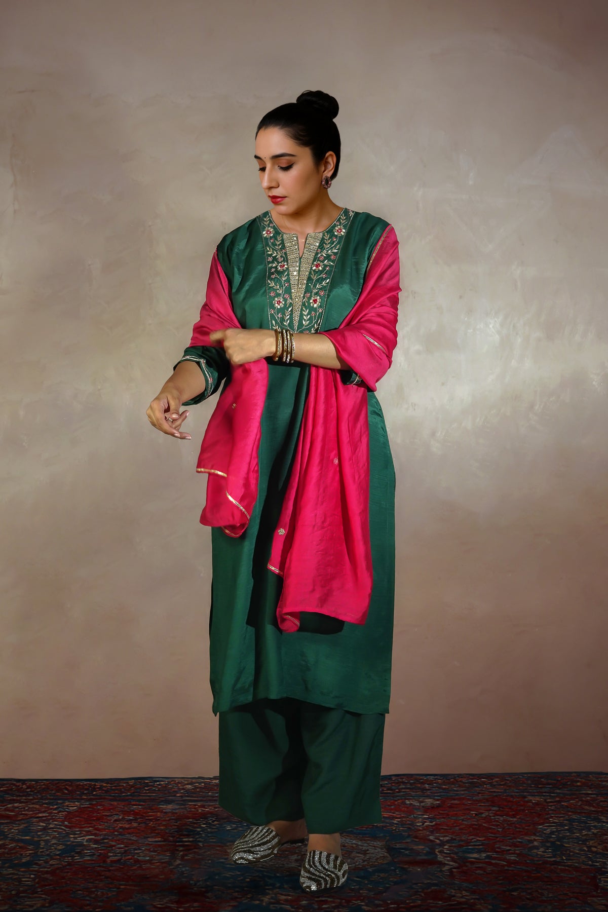 What makes this Gulzaar Green Embroidered Festive Kurta Set with Dupatta truly unique