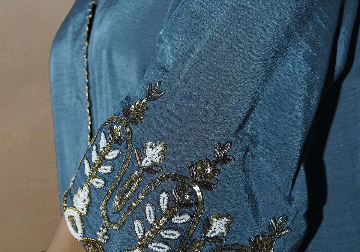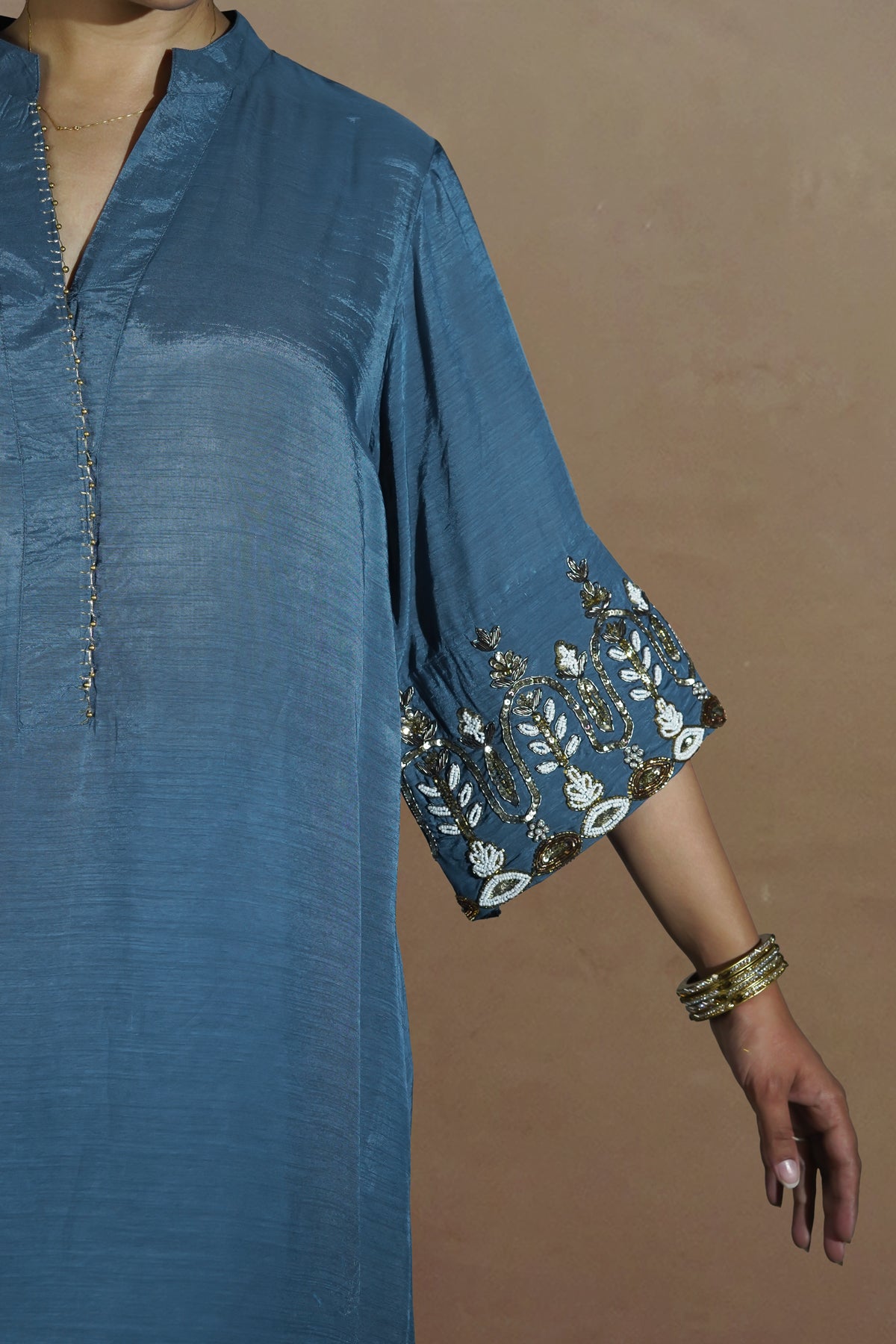 What makes this Meher Embroidered Sleeve Festive Kurta Set truly unique