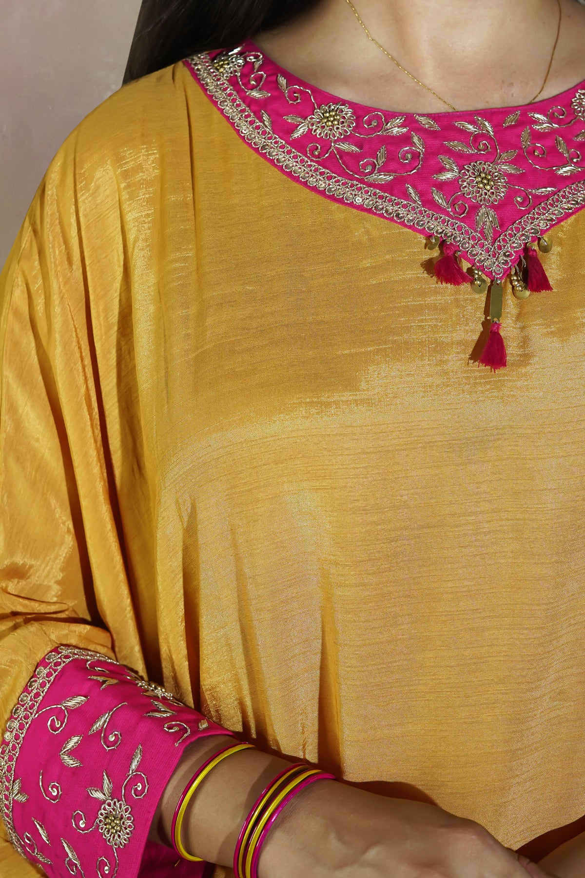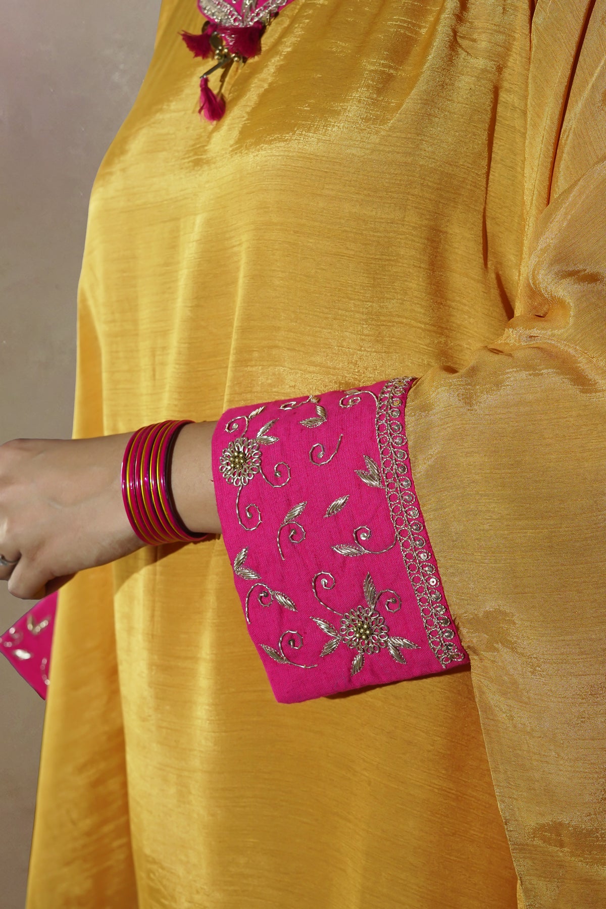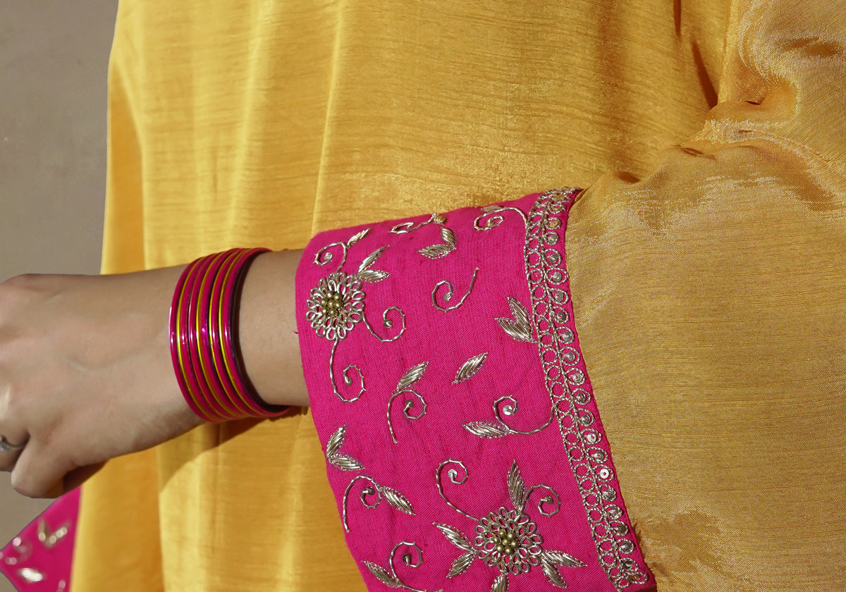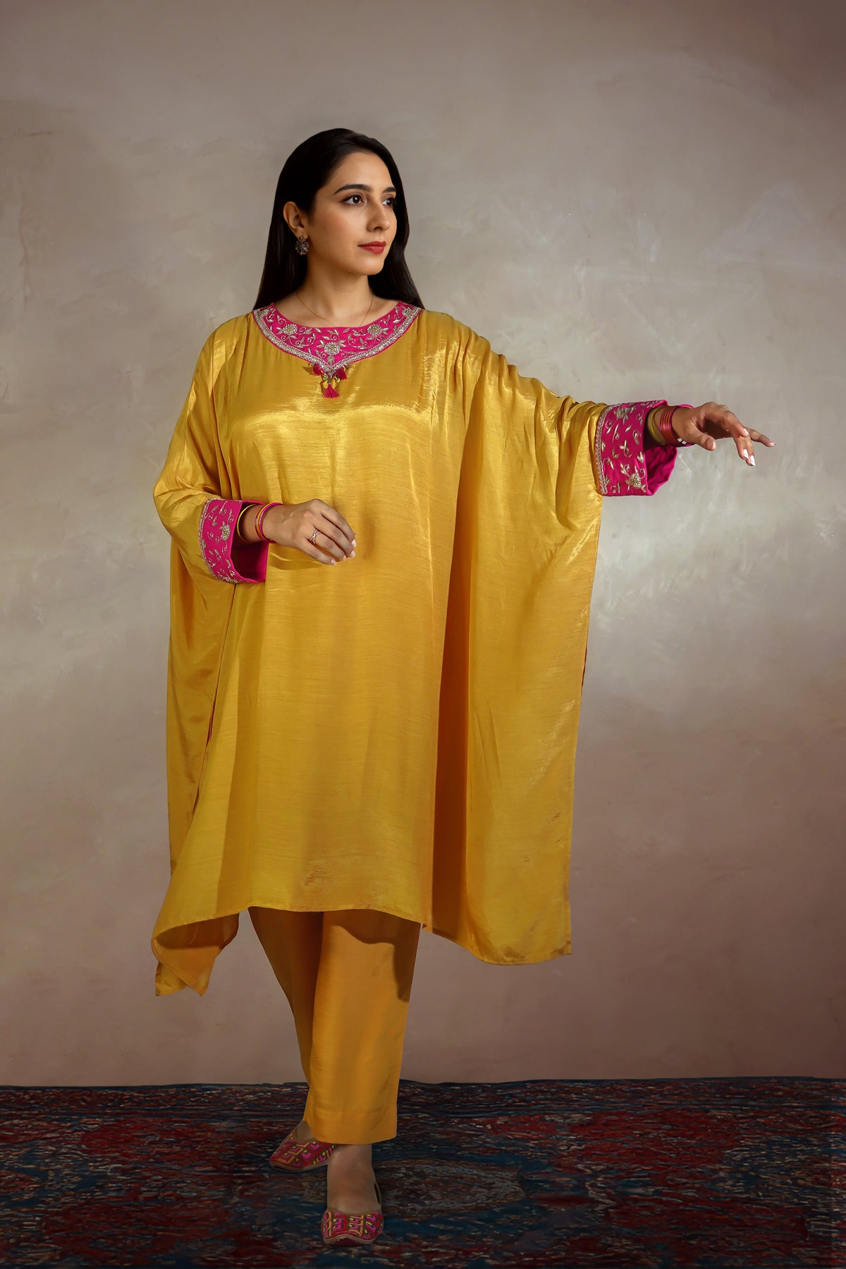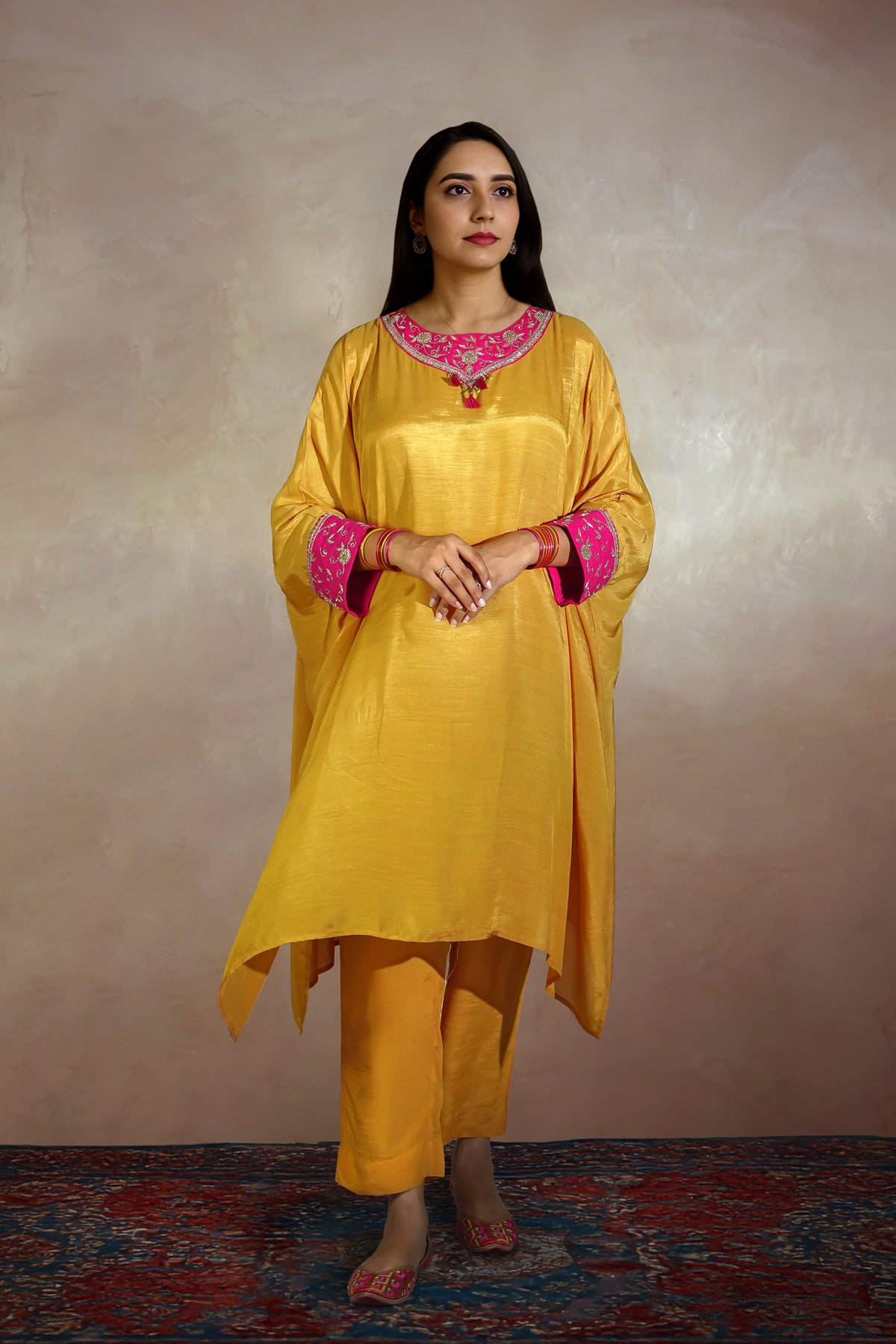 What makes this Noor Mustard Silk Festive Co-ord Set truly unique