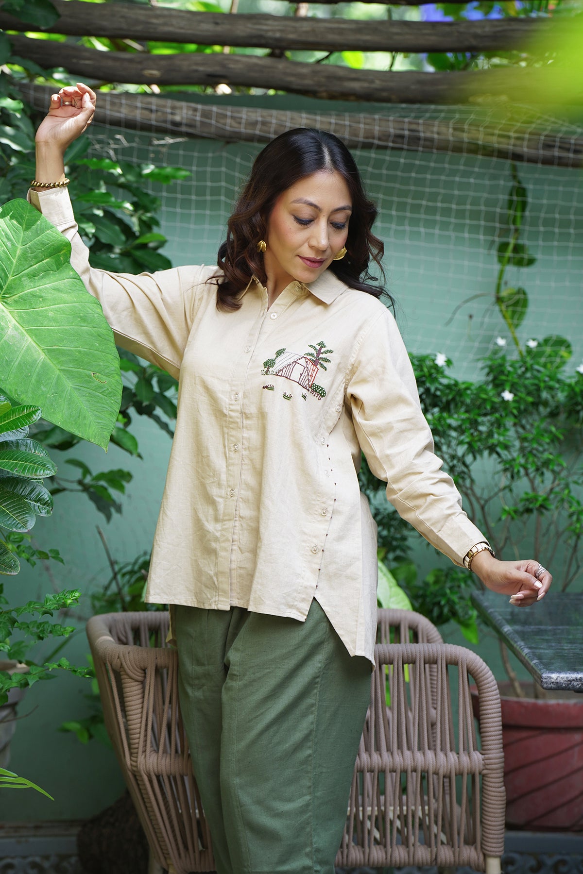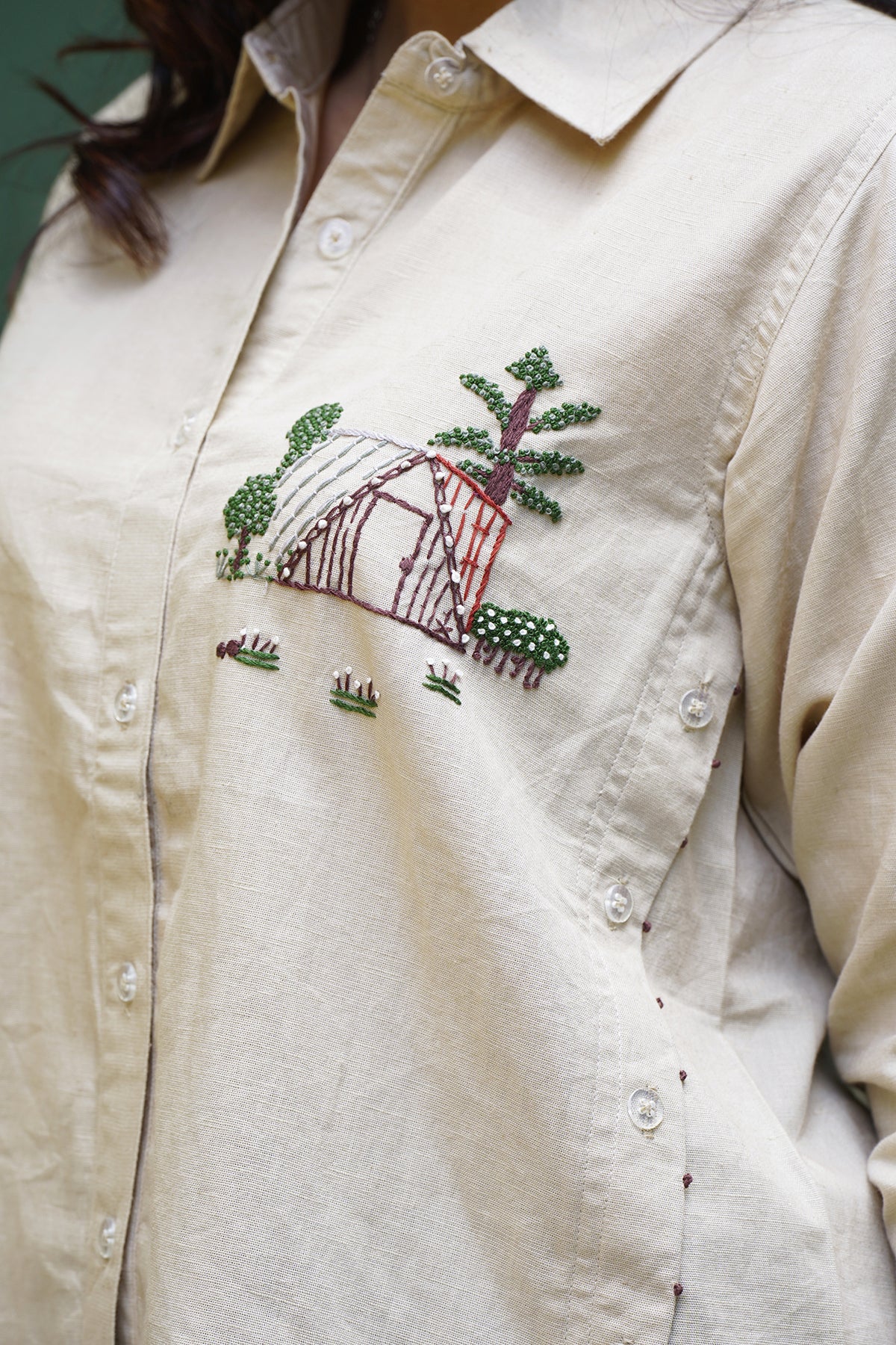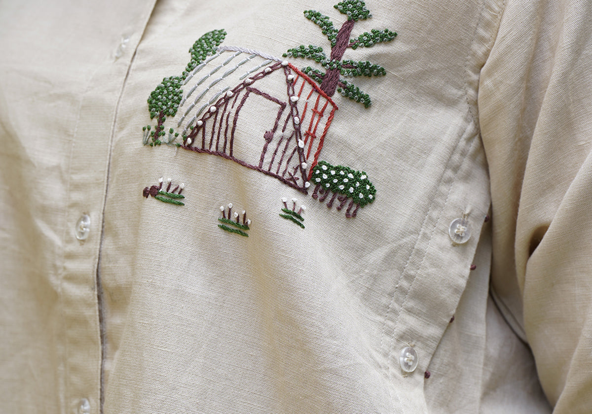 What makes this Roots & Roof Linen Embroidered Shirt truly unique