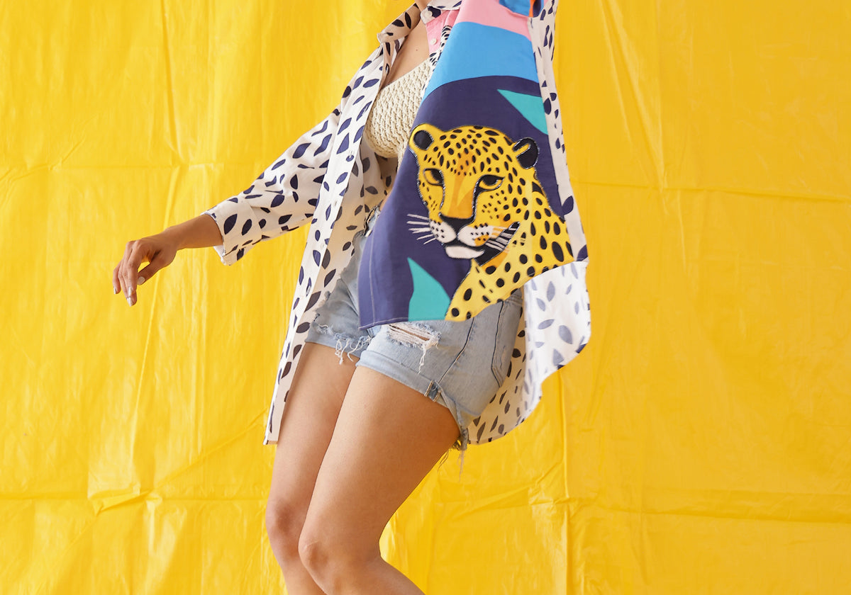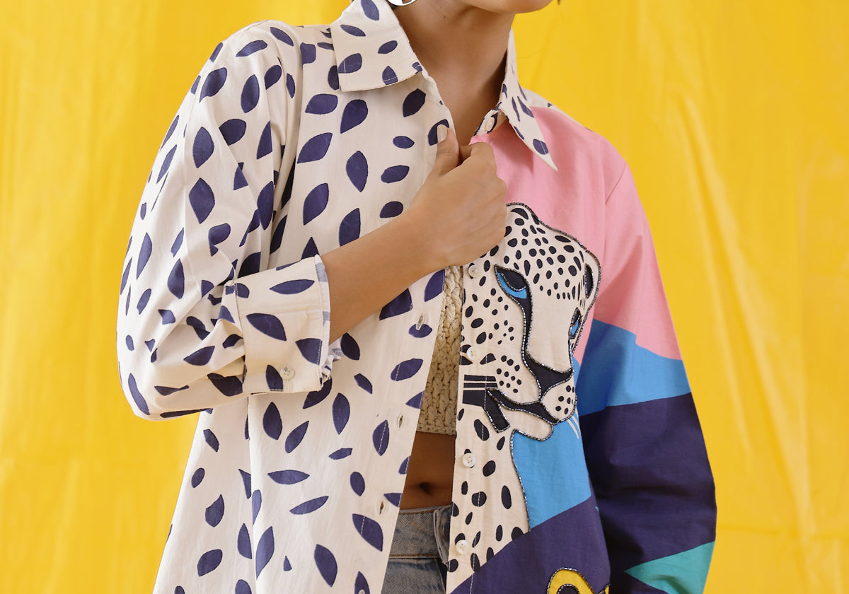 Elevate your wardrobe with this Tiger Motif Digital Printed Poplin Shirt, a perfect blend of style and comfort. Crafted from premium-quality poplin fabric, this shirt offers a soft yet structured feel, ensuring breathability and durability. The Tiger motif poplin shirt with handwork detailing adds a touch of artistic charm, making it a standout piece for casual outings, work wear, or weekend brunches. Designed with a classic collar, button-down front and Full sleeves, this free size shirt effortlessly combines elegance with a modern edge.